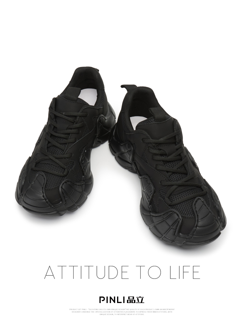 PINLI品立2025秋季新款男低帮鞋牛皮真皮网面鞋休闲运动老爹鞋潮D252121027