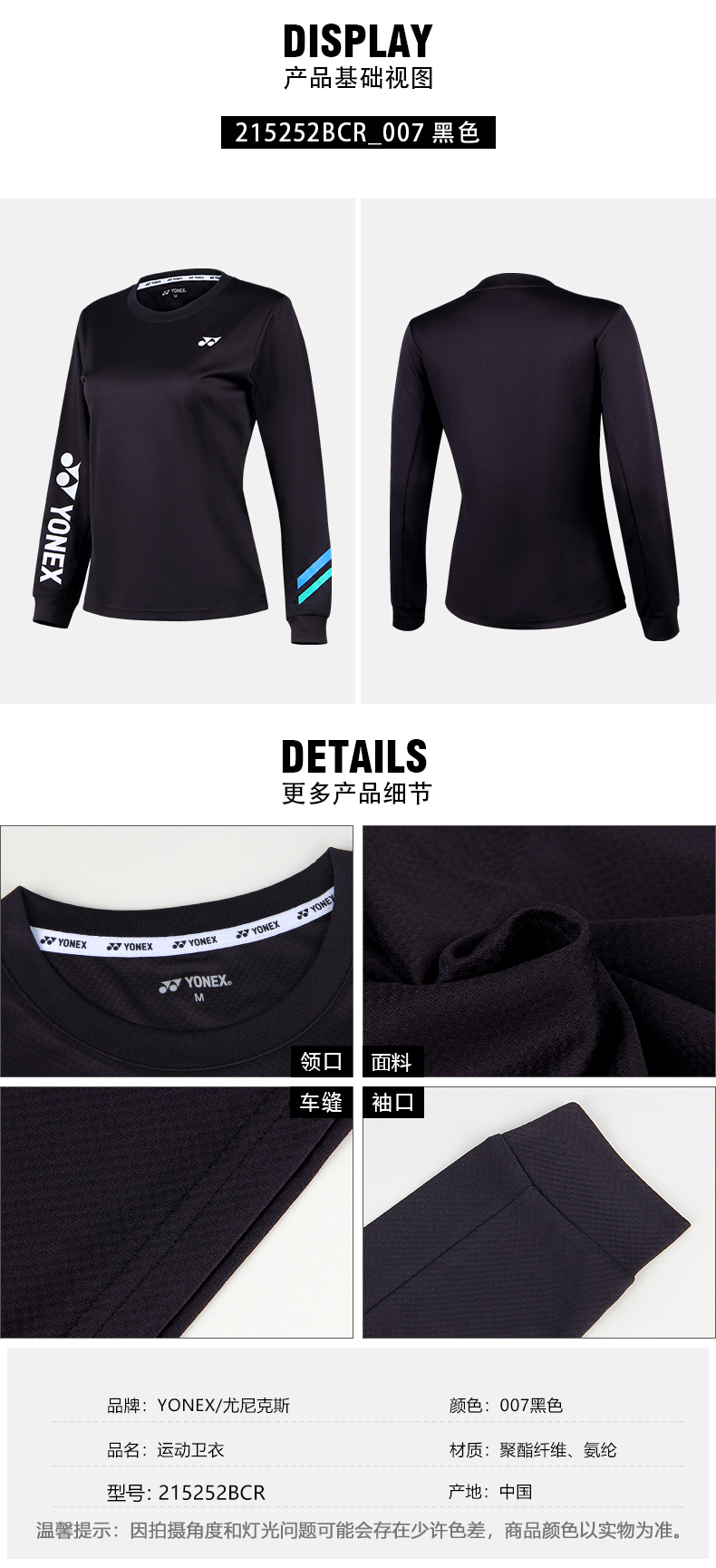 YONEX尤尼克斯羽毛球服130022BCR/230022BCR男女运动卫衣长袖秋季黑白简约运动套头上衣[特惠清仓]
