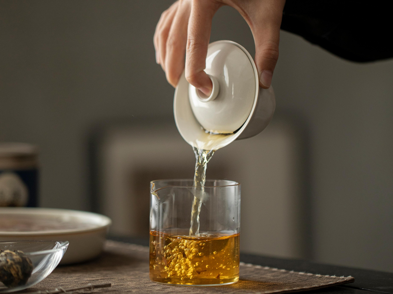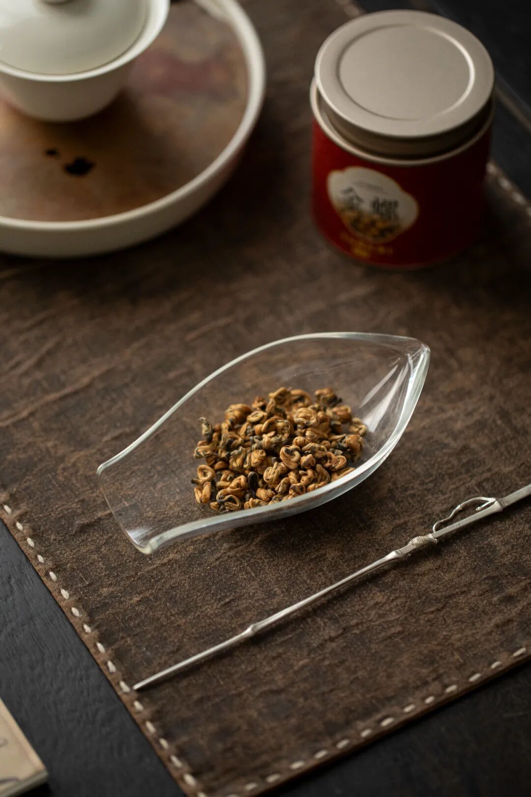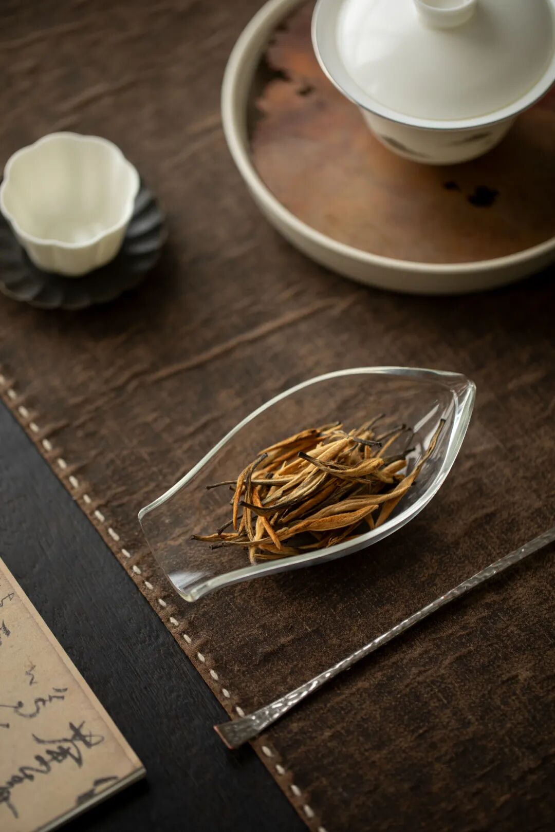 惊艳的是冲泡时刻:投入透明玻璃杯,注水后,茶叶缓缓舒展,像一朵金色莲花在水中绽放,美得让人舍不得喝。