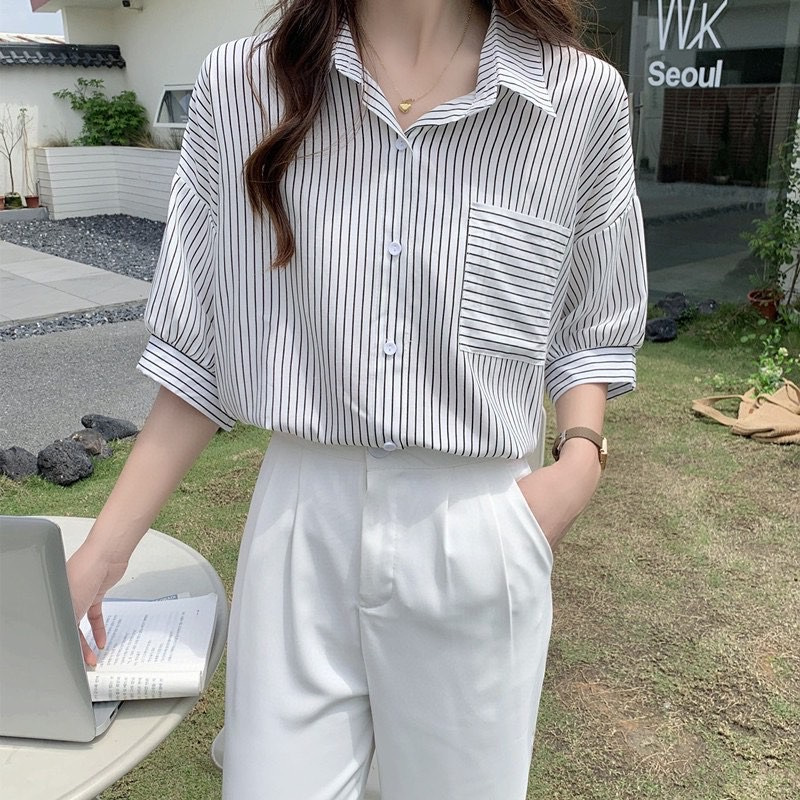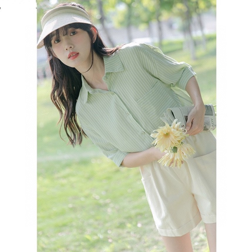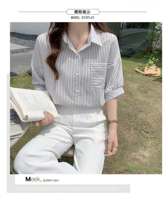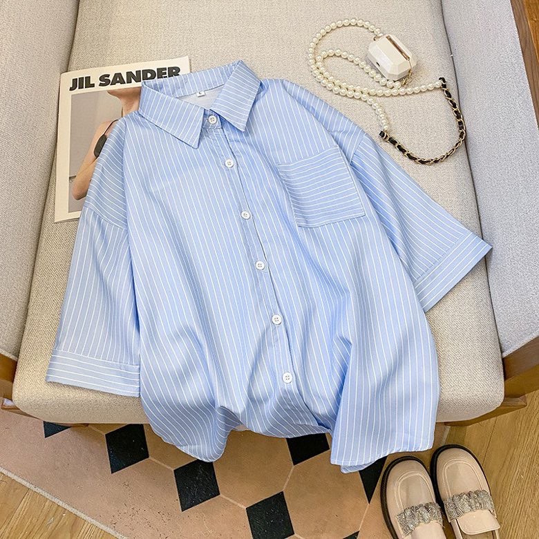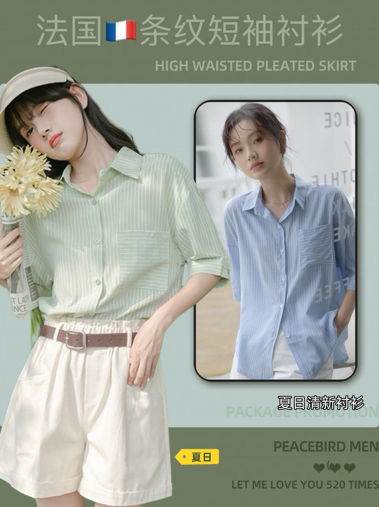 【法国品牌轻奢条纹短袖衬衫】新款~通勤日常穿搭首选 多囤两件件,时髦穿搭!yyds!出街你就是最靓的那个girl