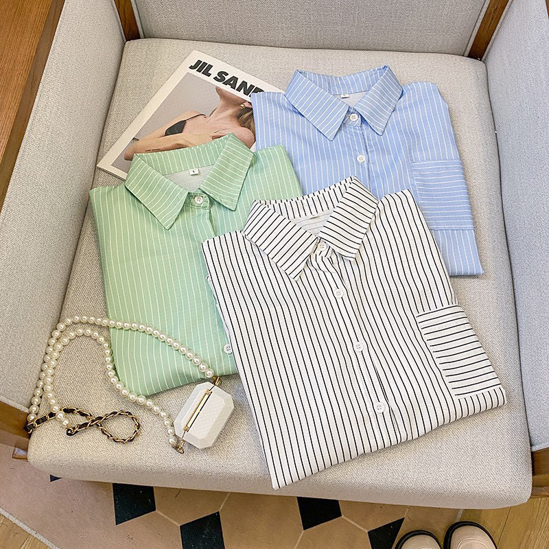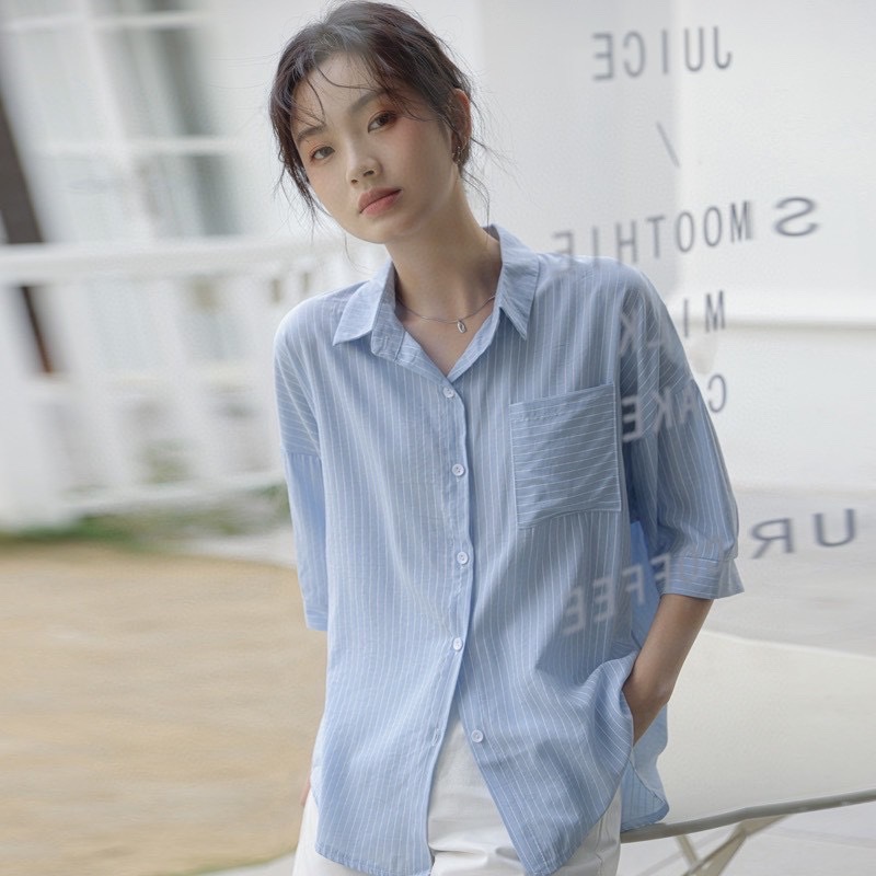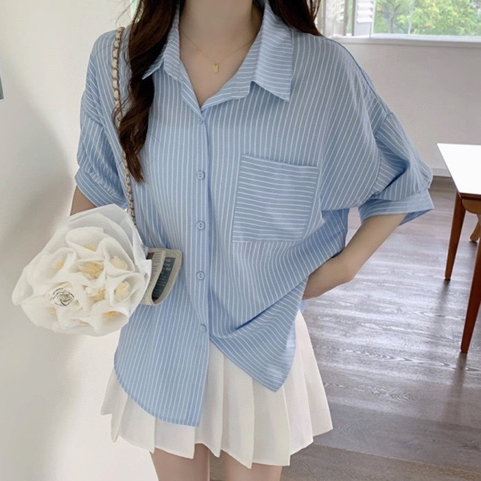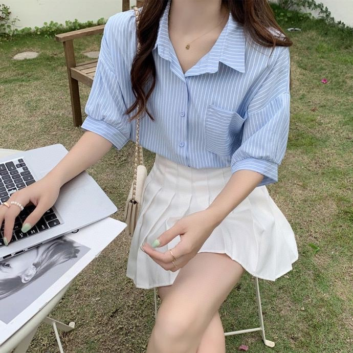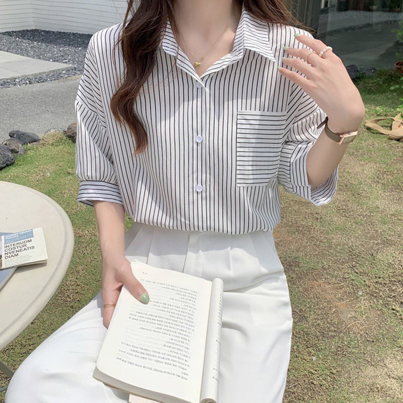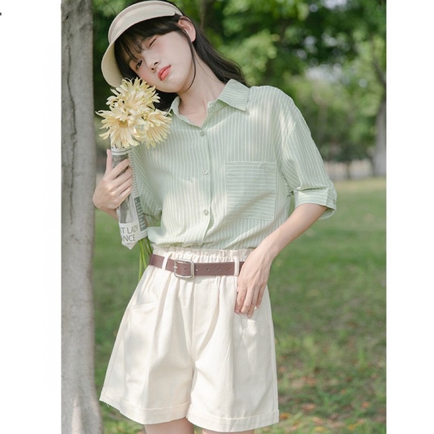 【法国品牌轻奢条纹短袖衬衫】新款~通勤日常穿搭首选 多囤两件件,时髦穿搭!yyds!出街你就是最靓的那个girl