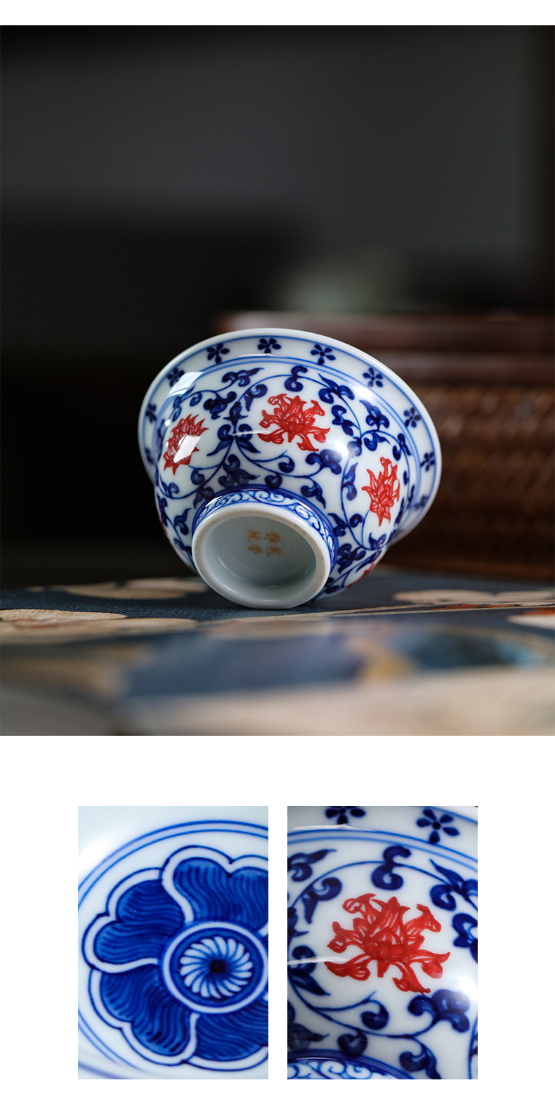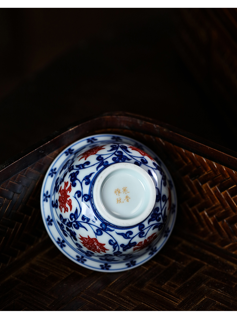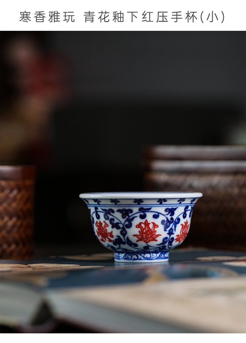 问鼎寒香雅玩青花釉下红压手杯(小)