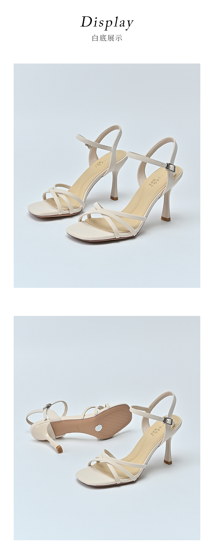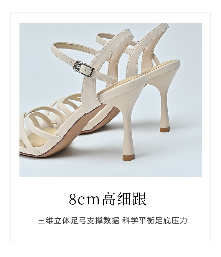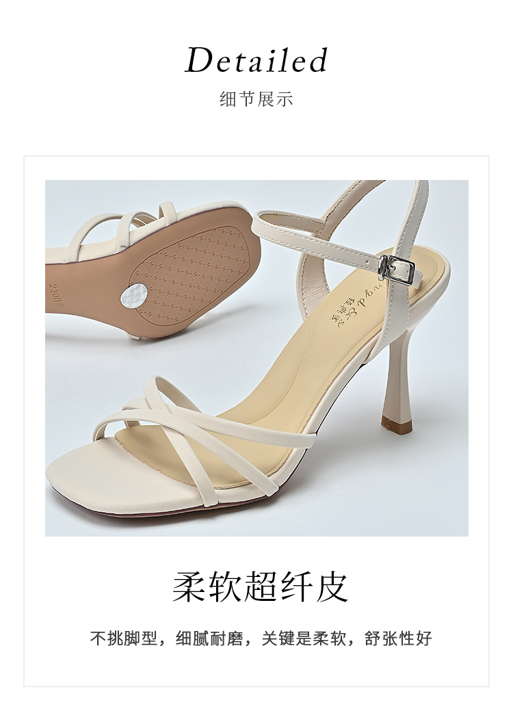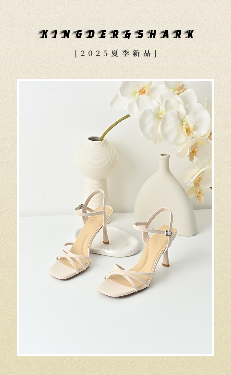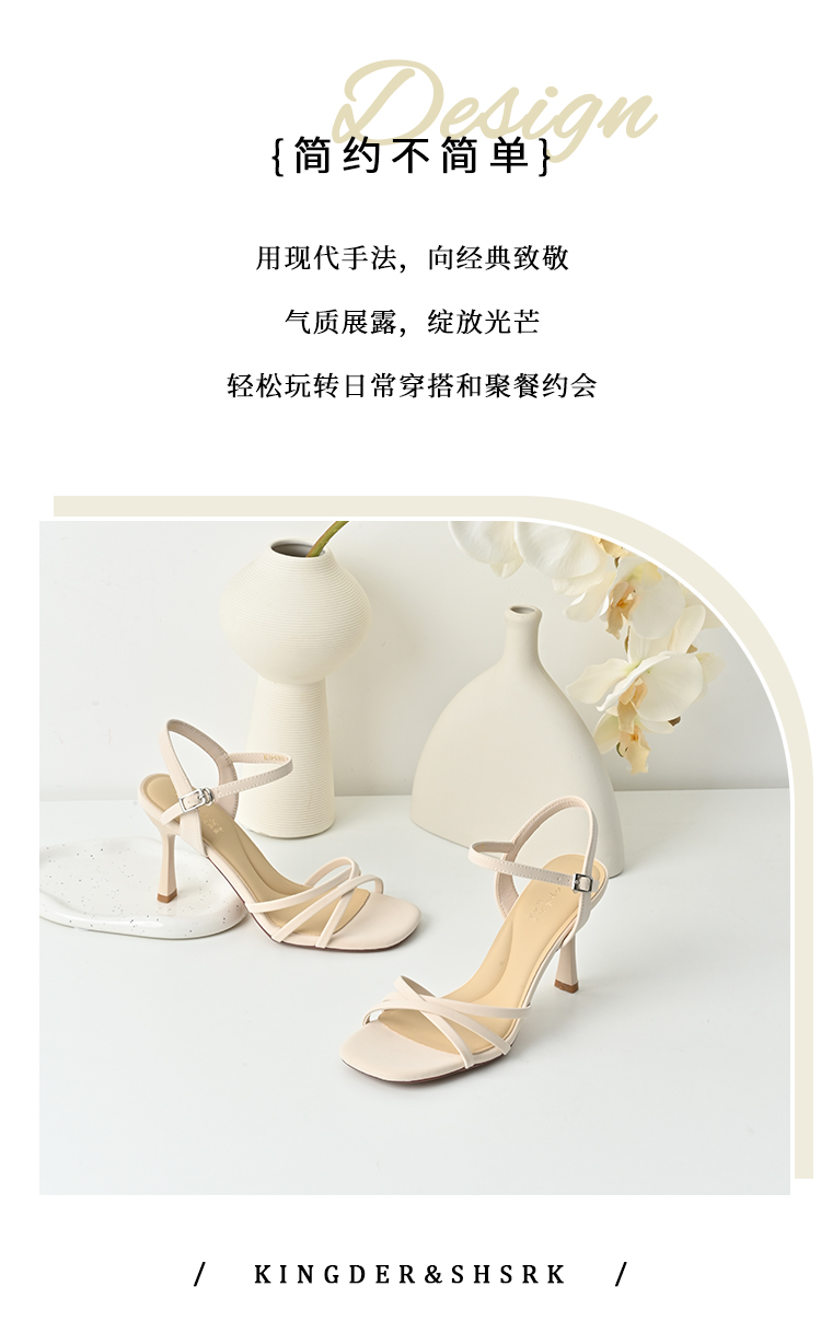 经典鲨2025夏季新品纯色简约8cm一字带气质露趾高跟鞋凉鞋女KC19-529161