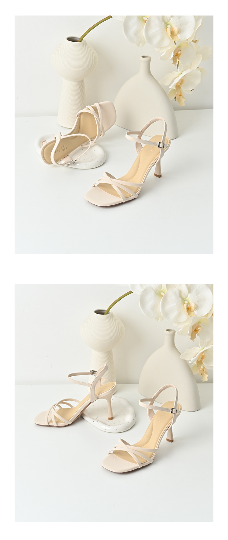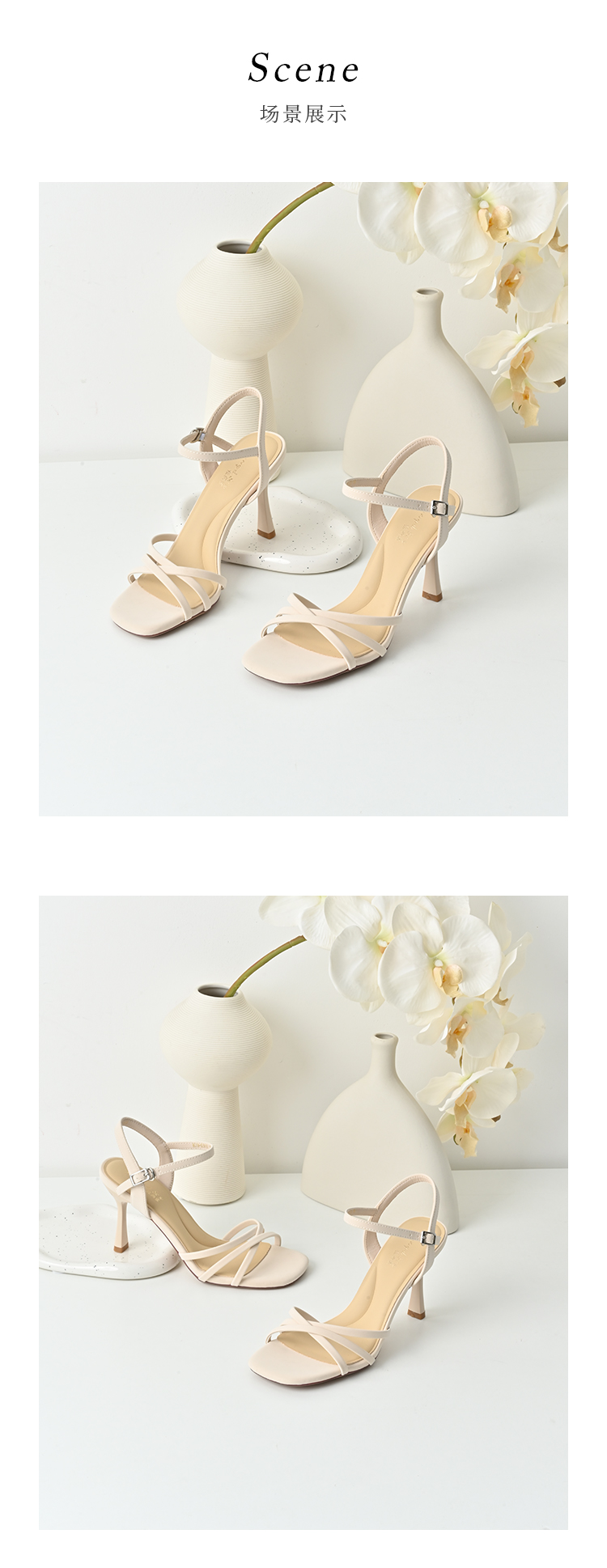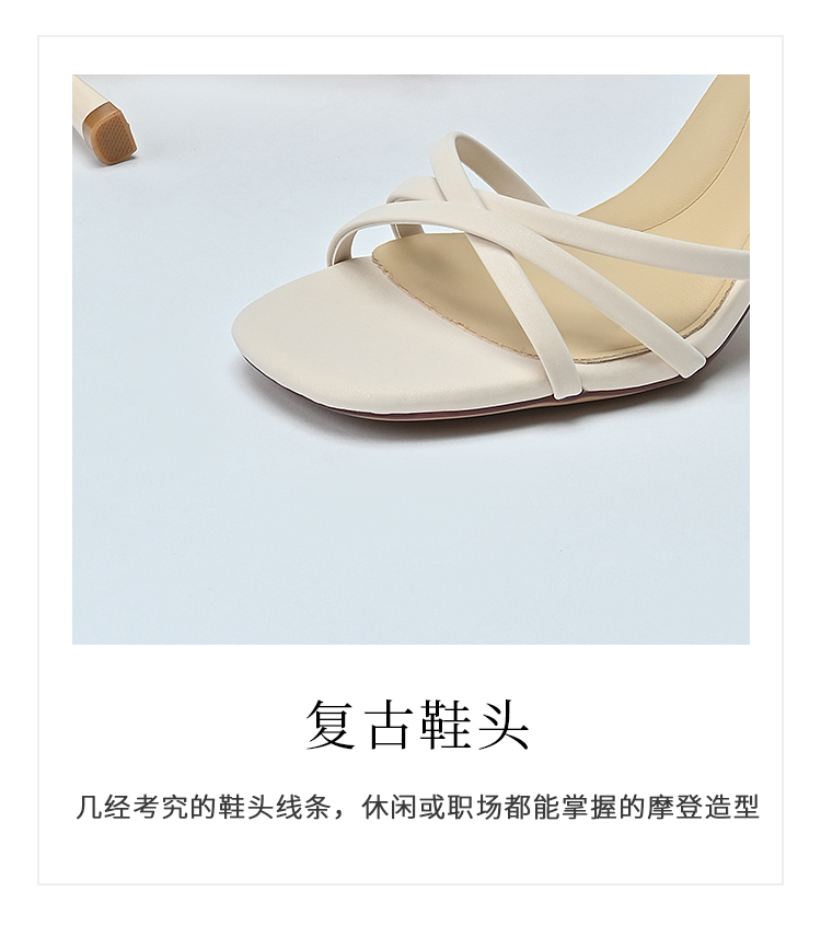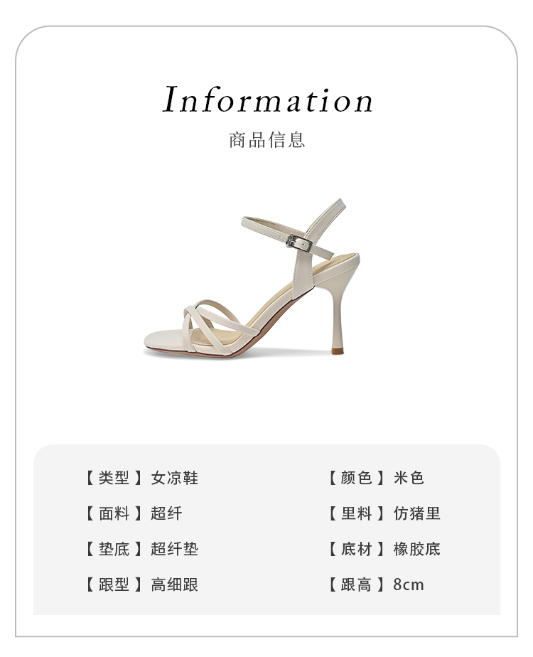 经典鲨2025夏季新品纯色简约8cm一字带气质露趾高跟鞋凉鞋女KC19-529161