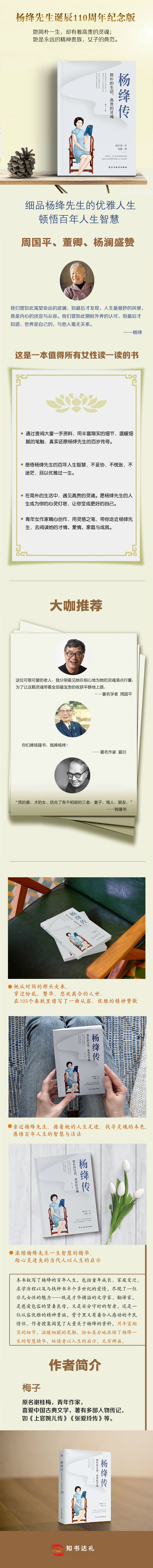 本书叙写了杨绛的百年人生,包括童年成长、家庭变迁、求学历程以及与钱钟书半个多世纪的爱情,尽现了一位非凡女性的魅力——既是才华横溢的文学家、翻译家,是慈爱包容的贤妻良母,又是安分守时的智者,还是一位从容优雅的精神贵族,骨子里又有着令人感动的平民情怀。作者搜集阅览了大量关于杨绛的资料,用丰富翔实的细节,温暖细腻的笔触,恰如其分地浓缩了杨绛一生的智慧精华,给读者以人生的启示,无穷裨益。
