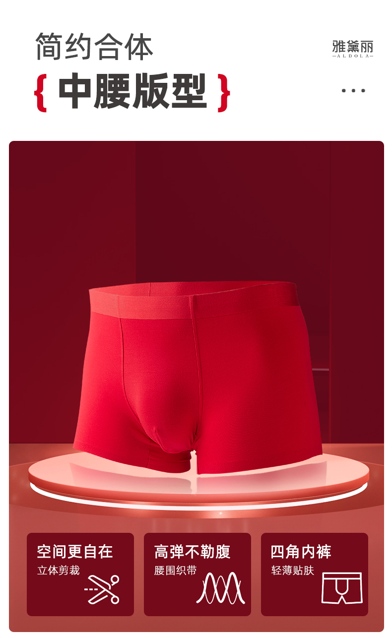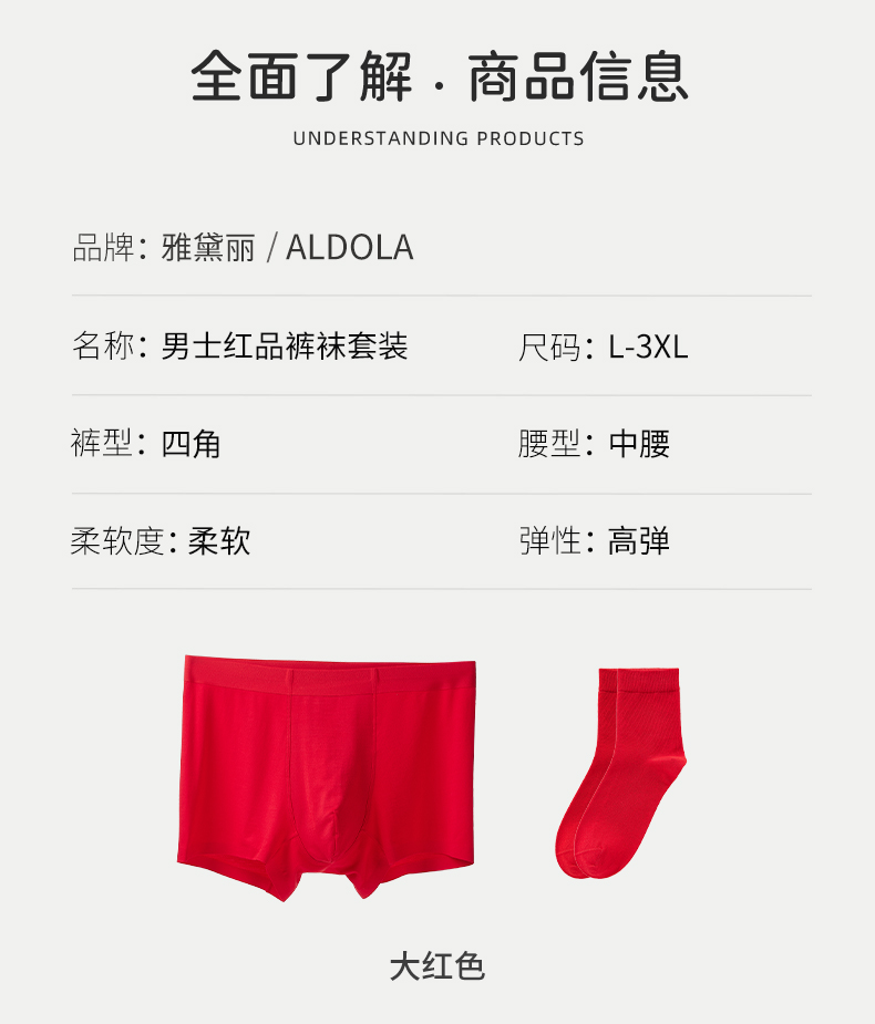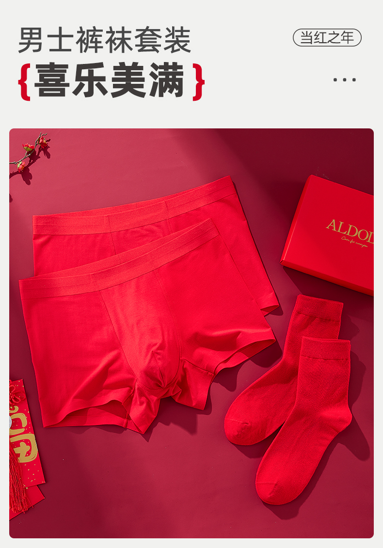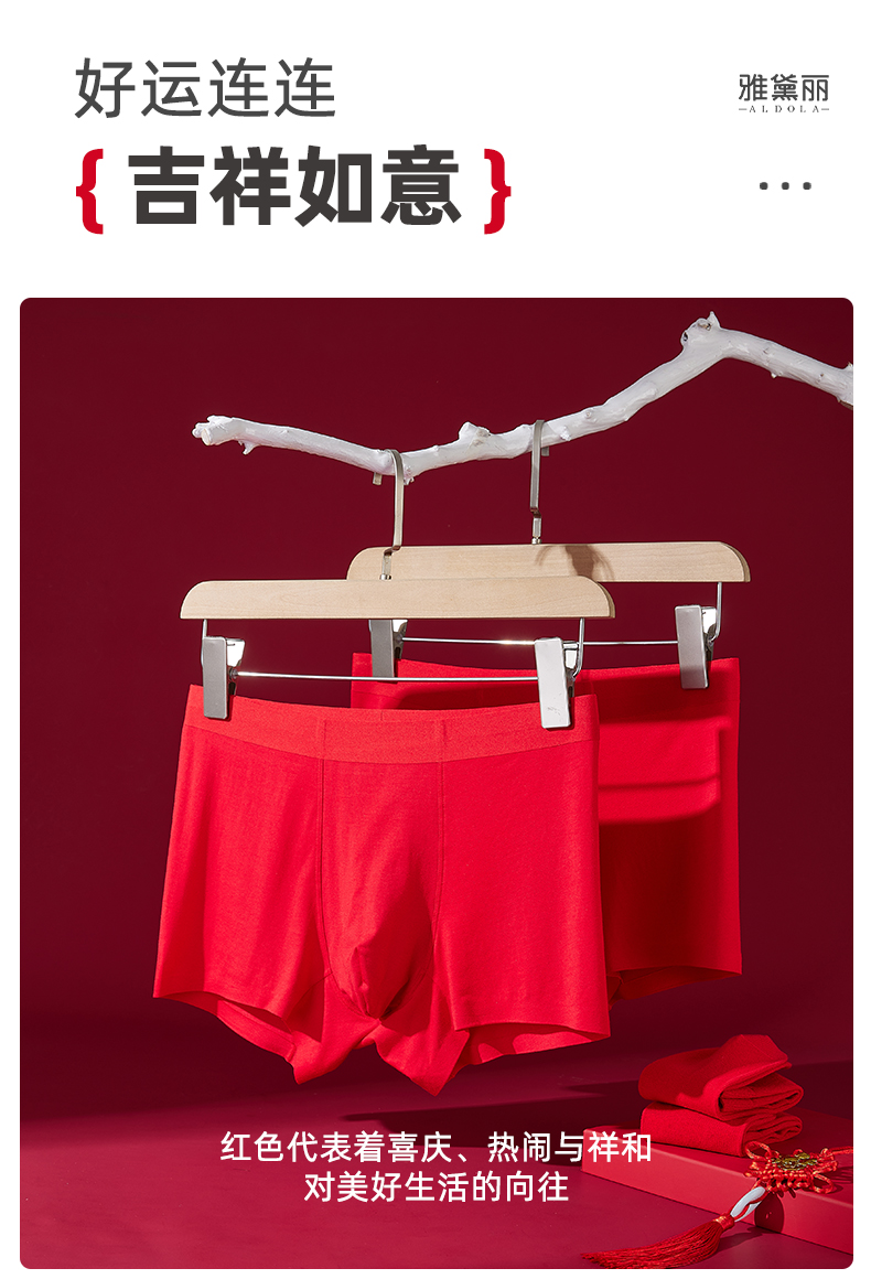 雅黛丽男士内裤本命年红色平角裤袜子莫代尔柔软舒适大码四角裤头