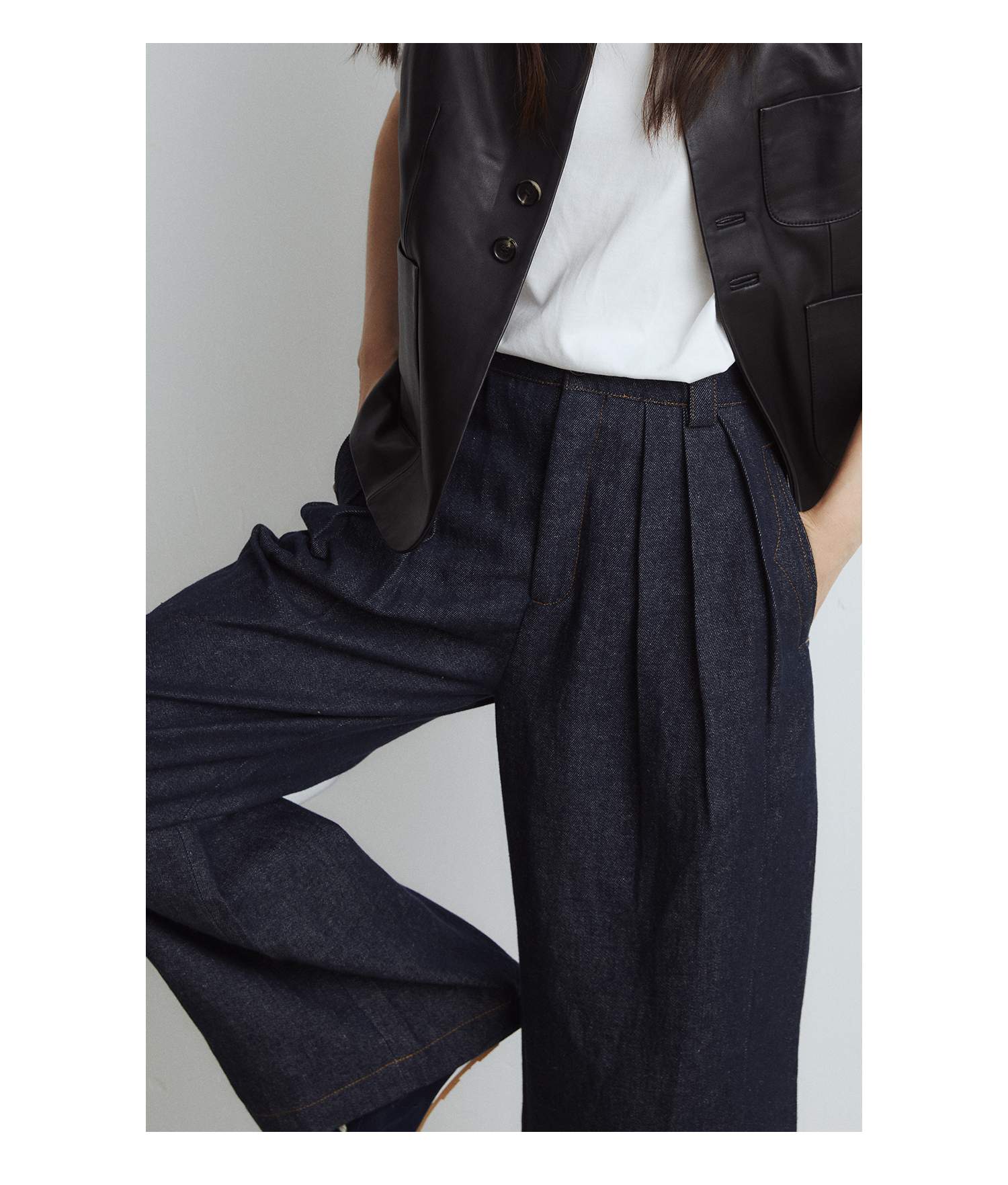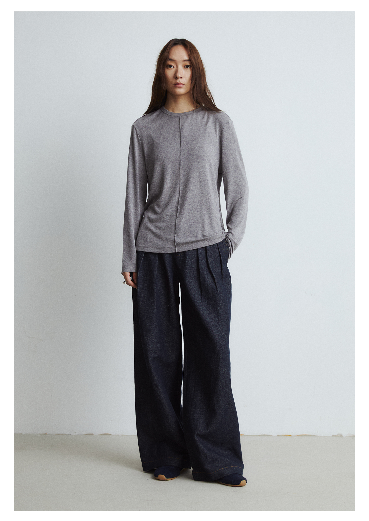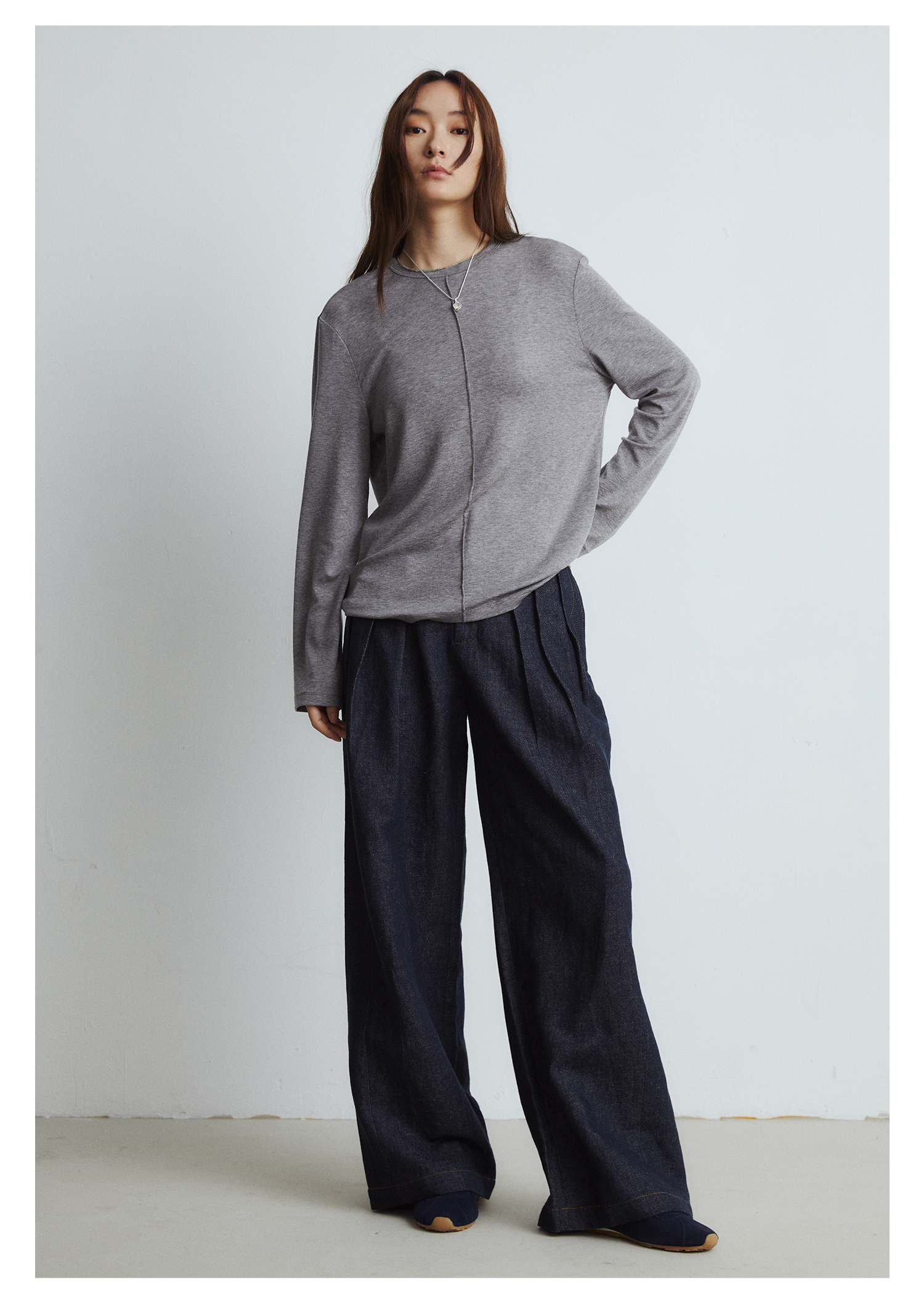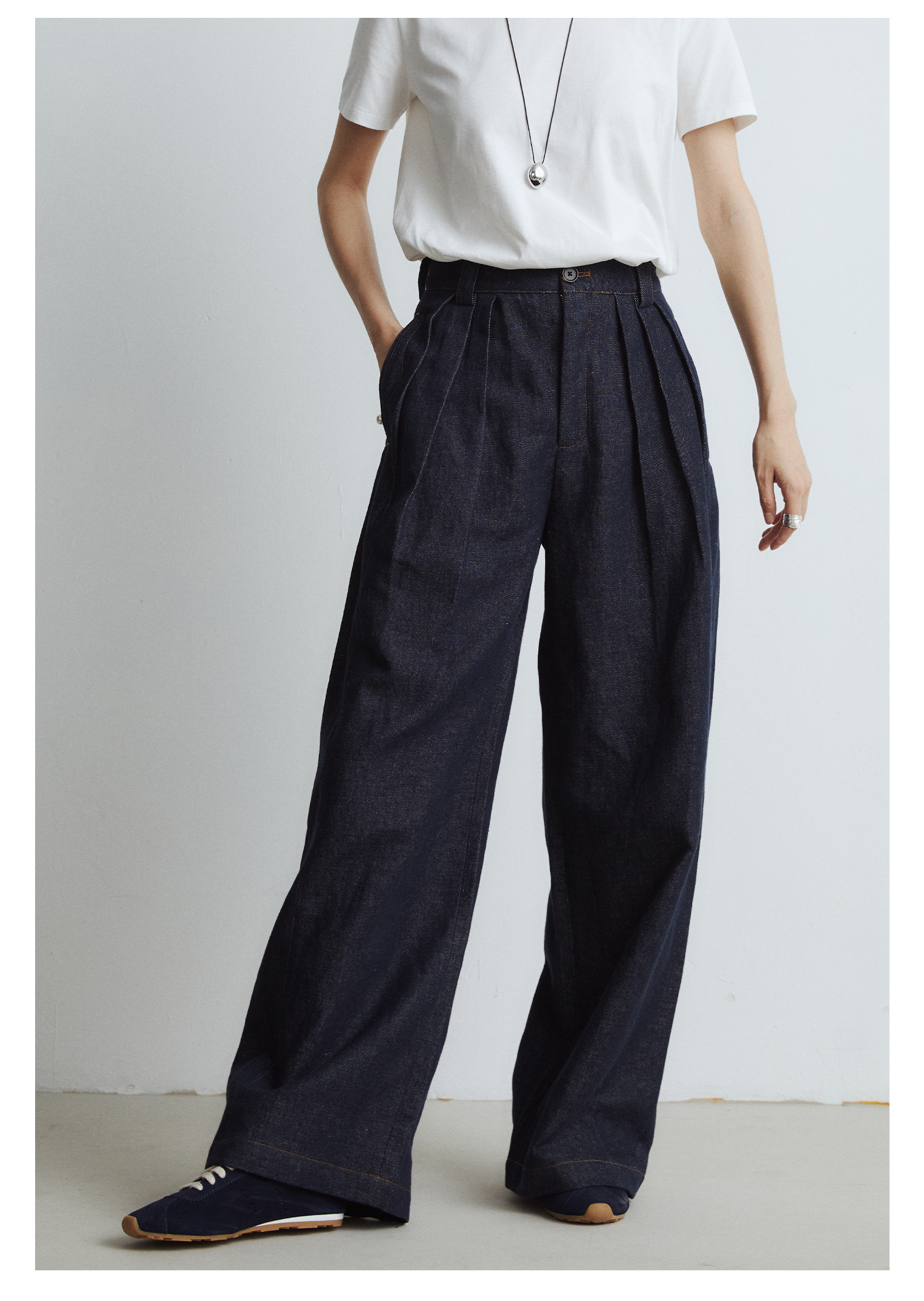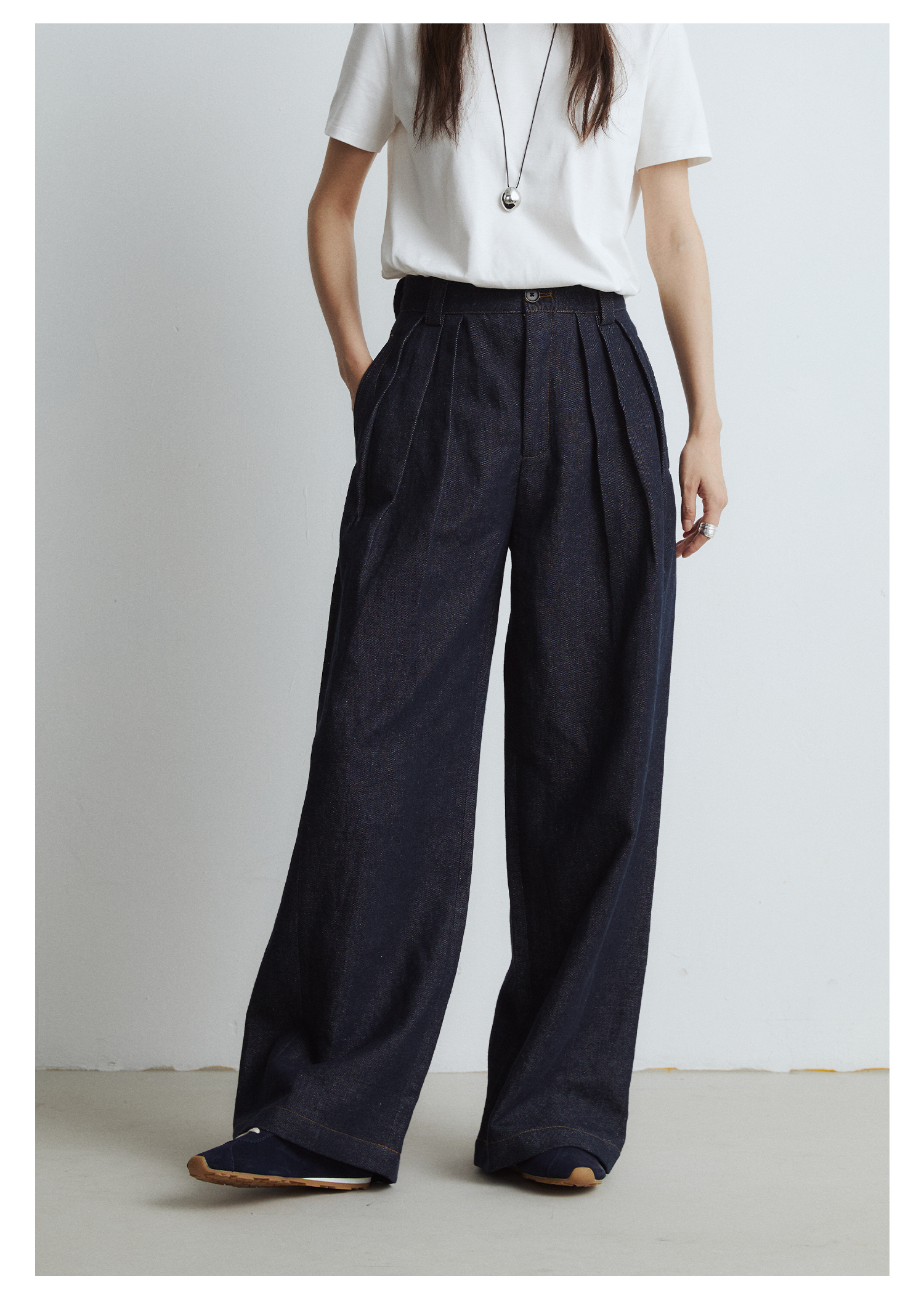 棉仓3561518003-秋季新款宽松显瘦松弛感阔腿裤 *沉淀原浆色牛仔裤女