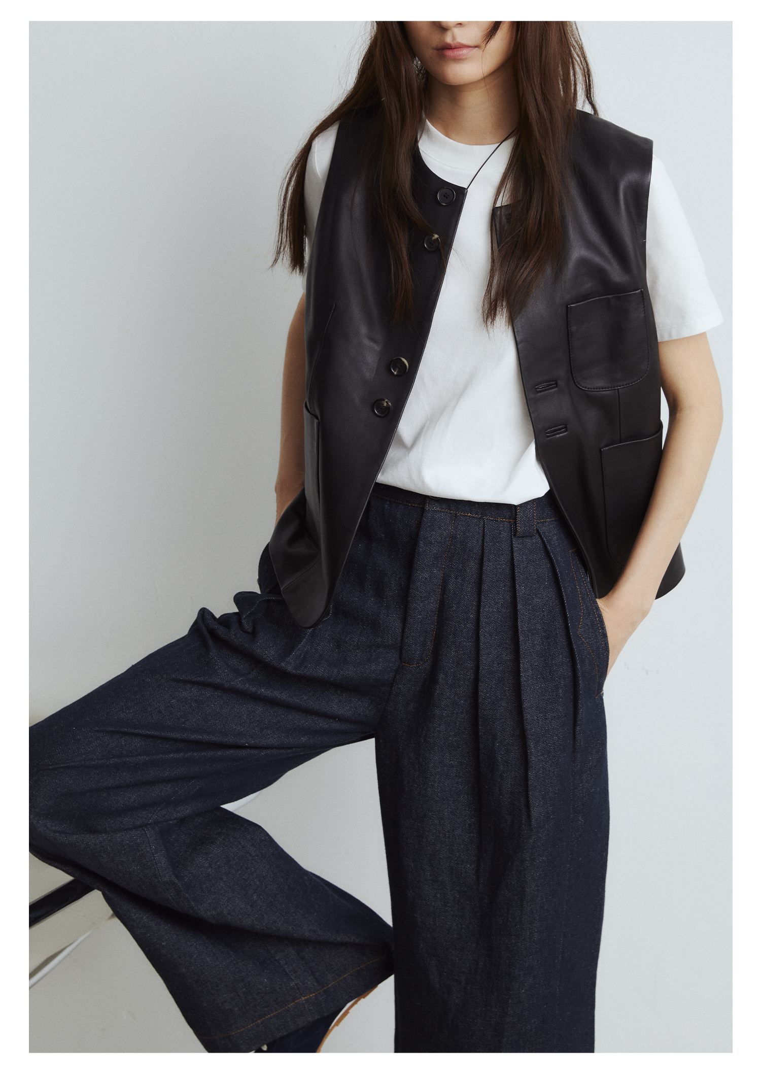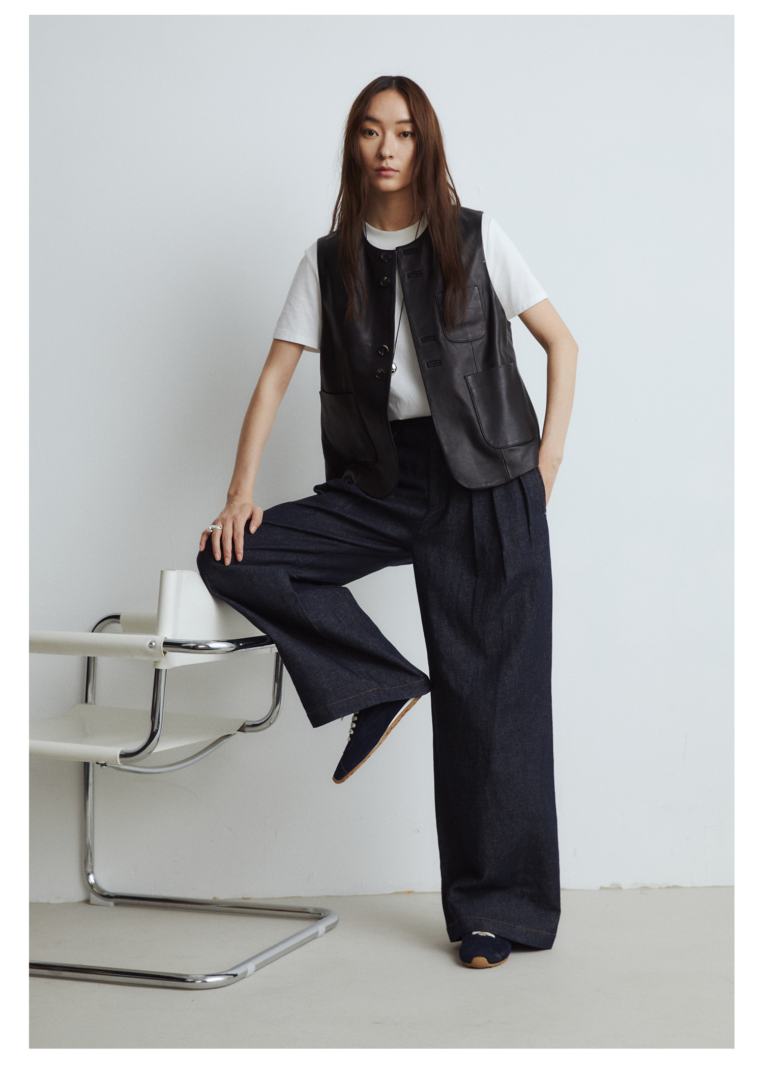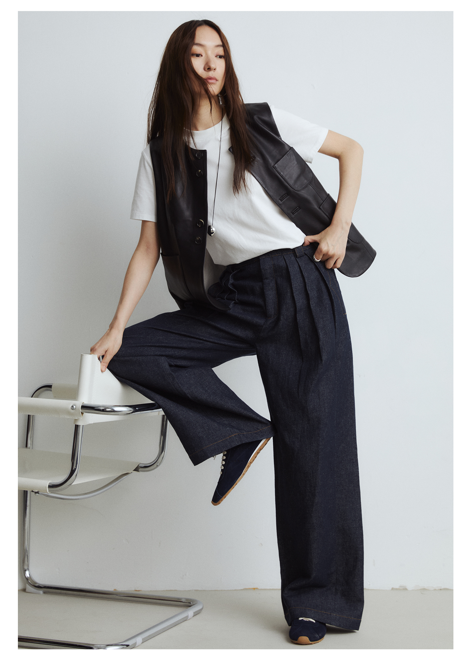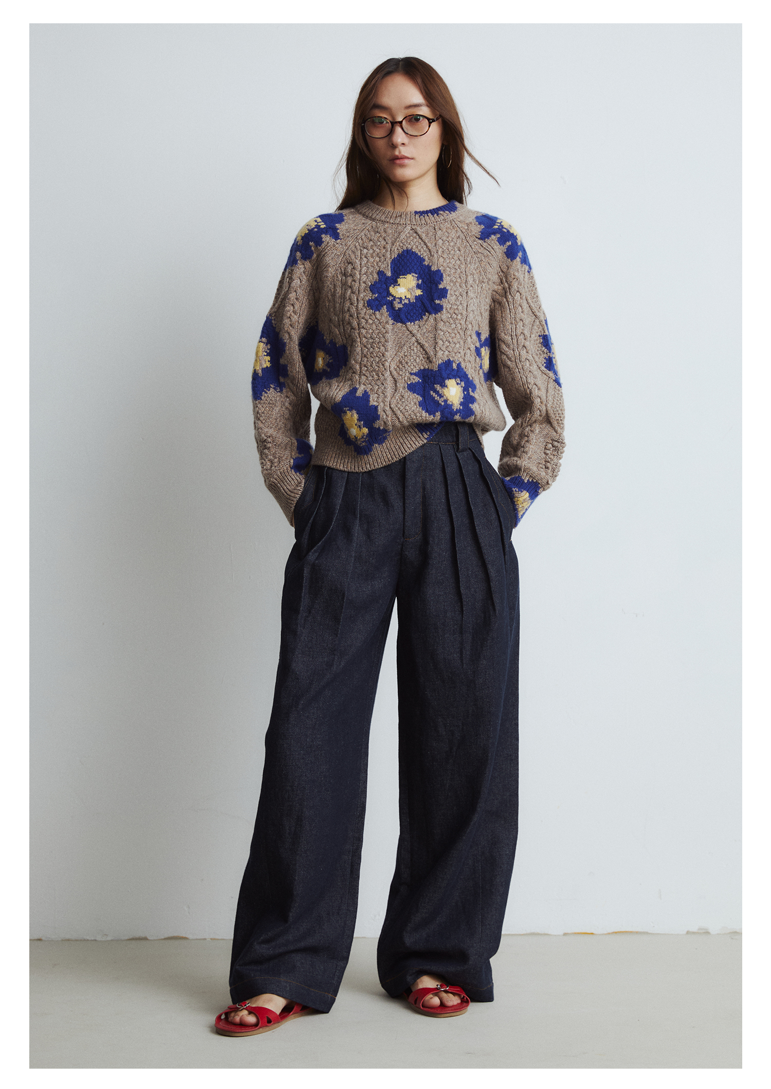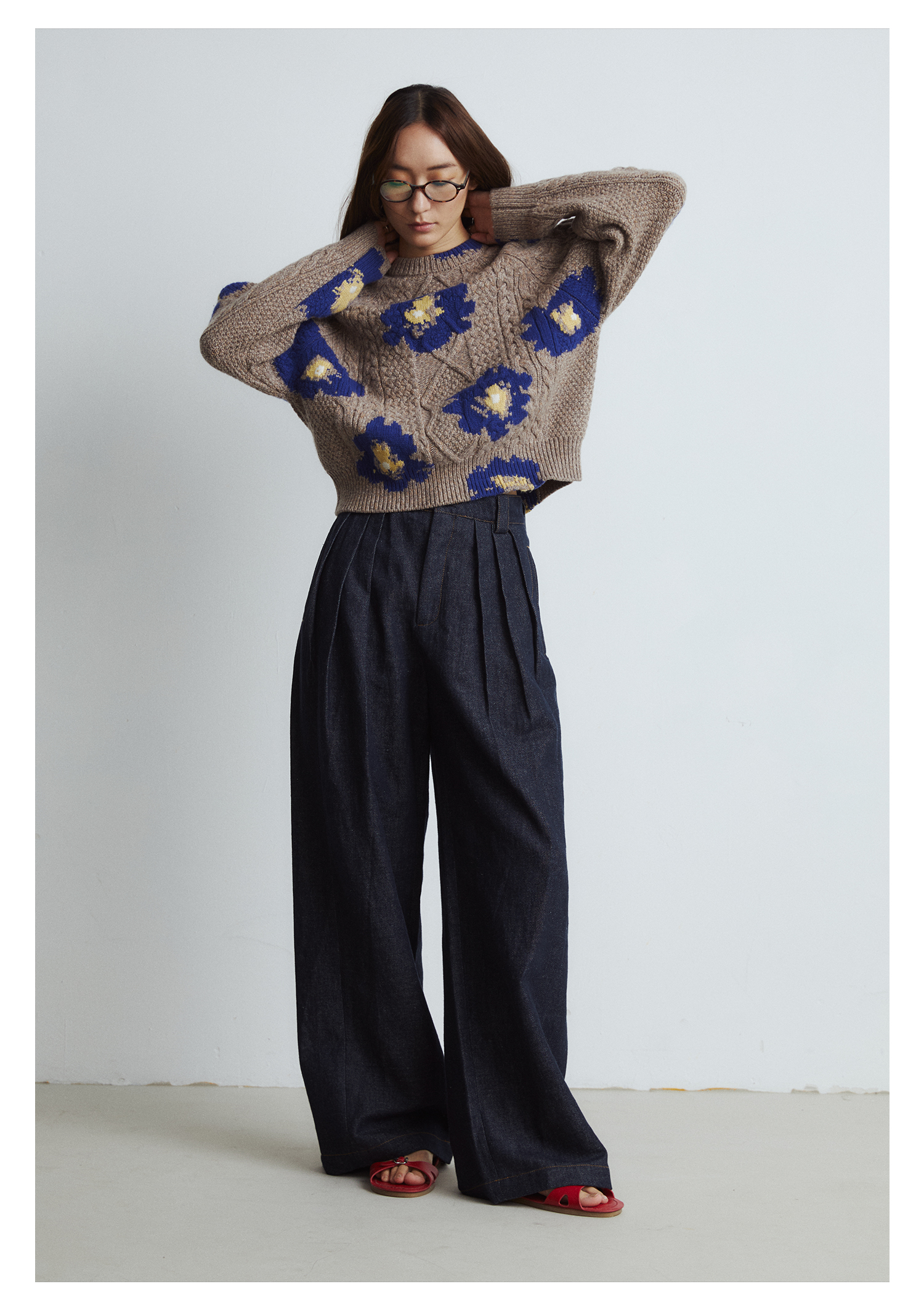 棉仓3561518003-秋季新款宽松显瘦松弛感阔腿裤 *沉淀原浆色牛仔裤女