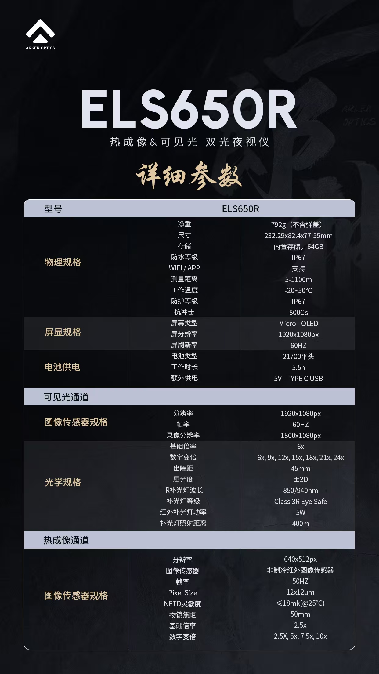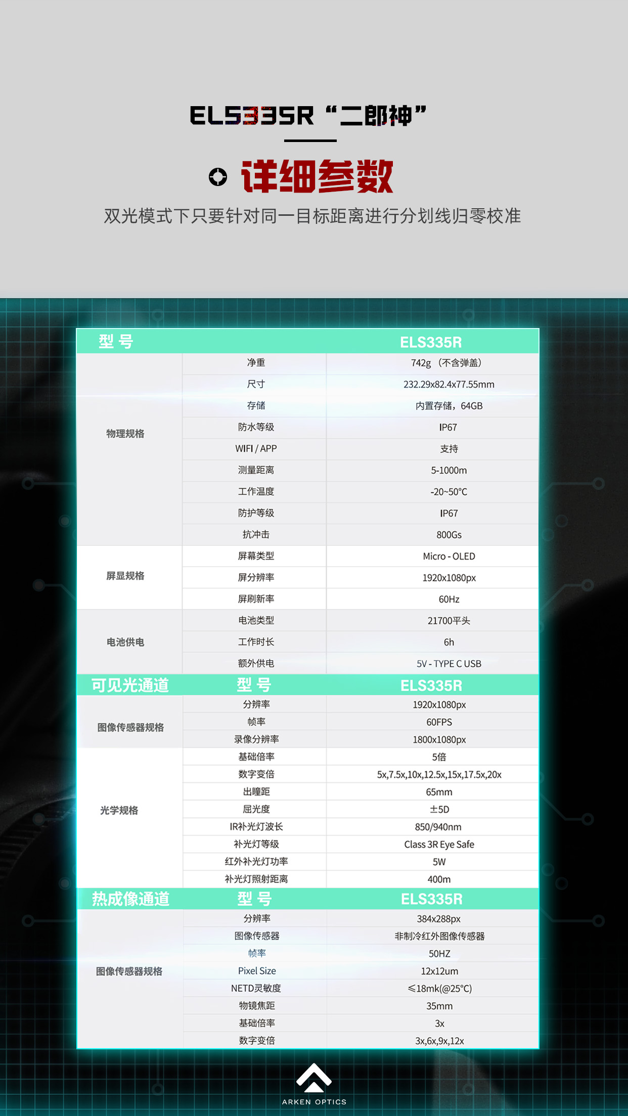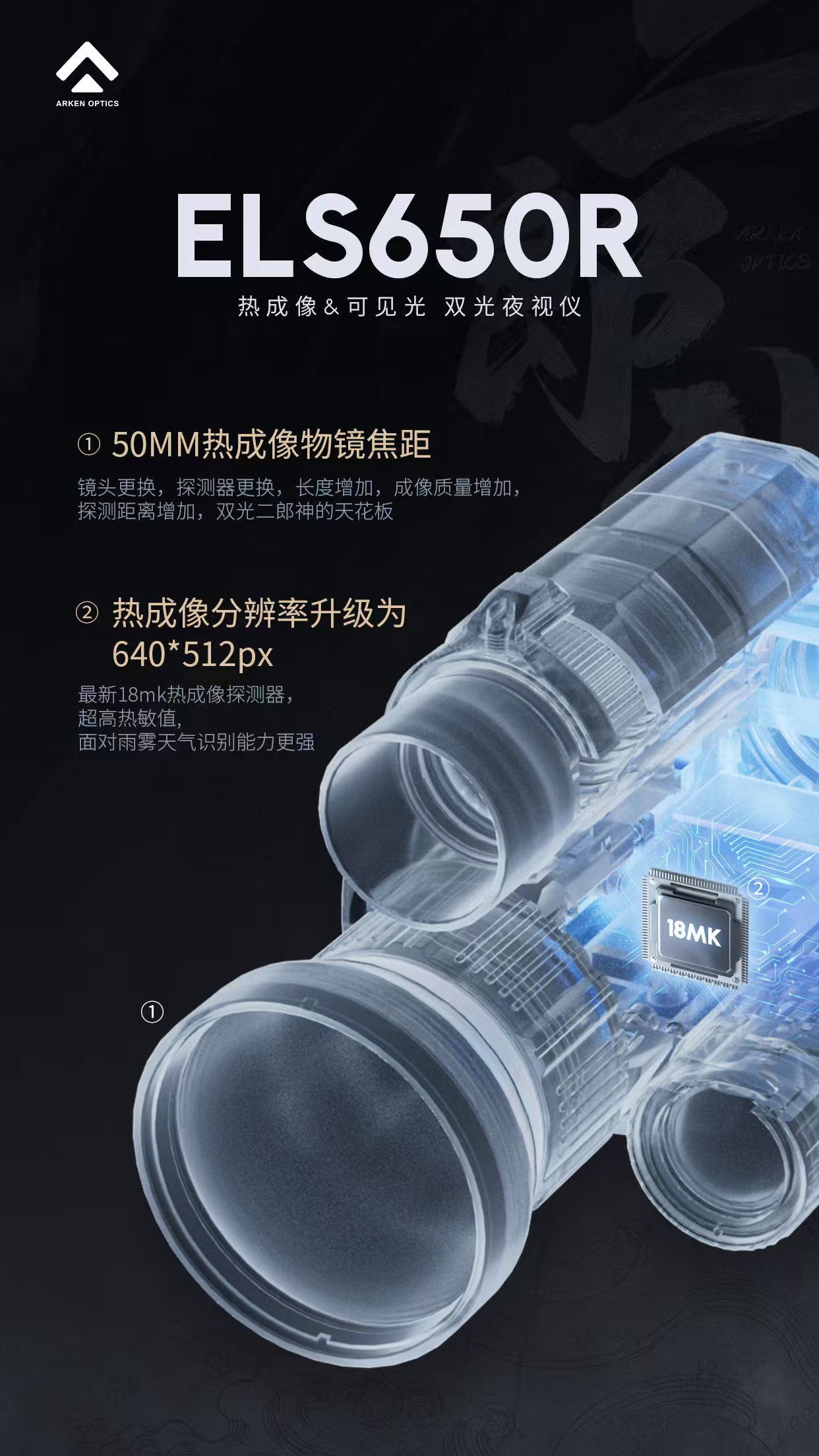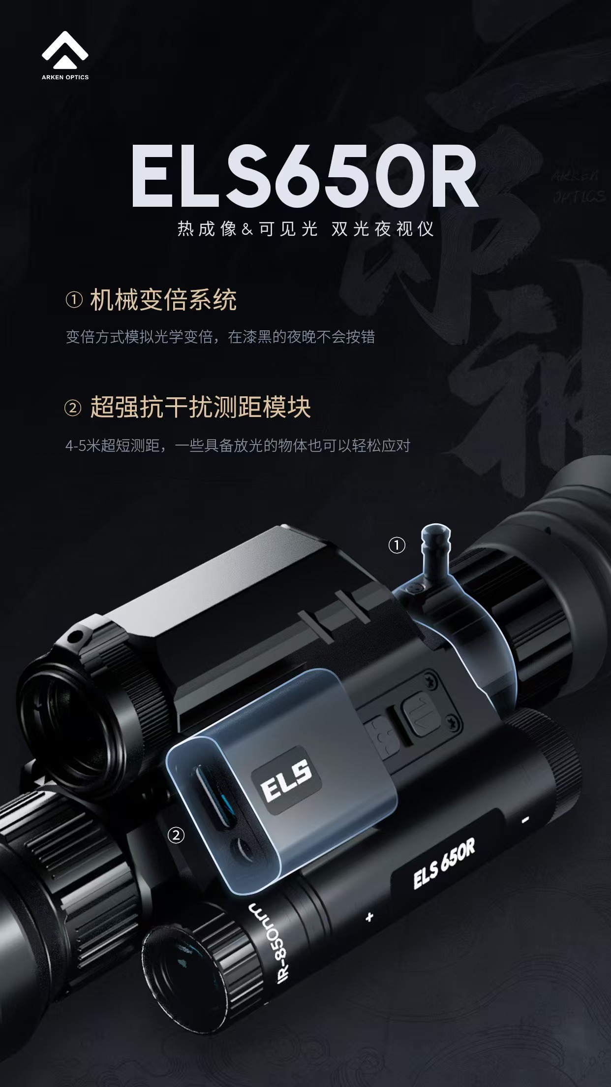 Arken阿肯二郎神650 335系列红外热成夜视双光自动落点