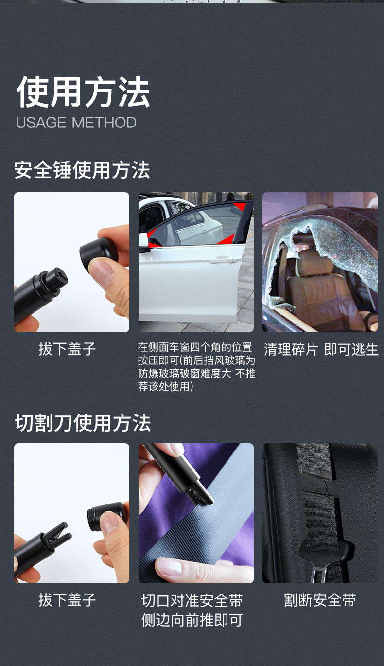 汽车多功能全金属三合一破窗器 临时停车号码牌安全带割刀