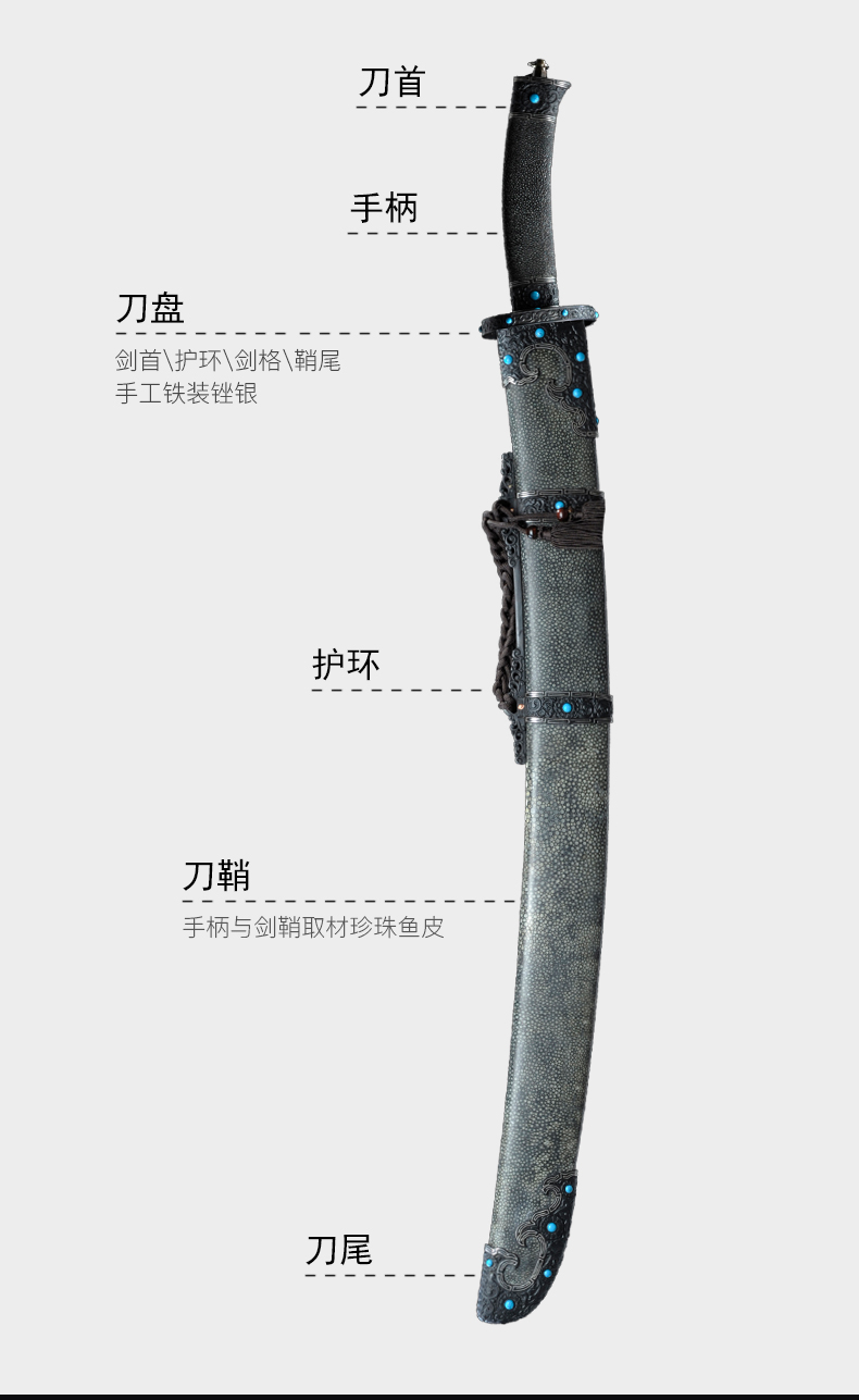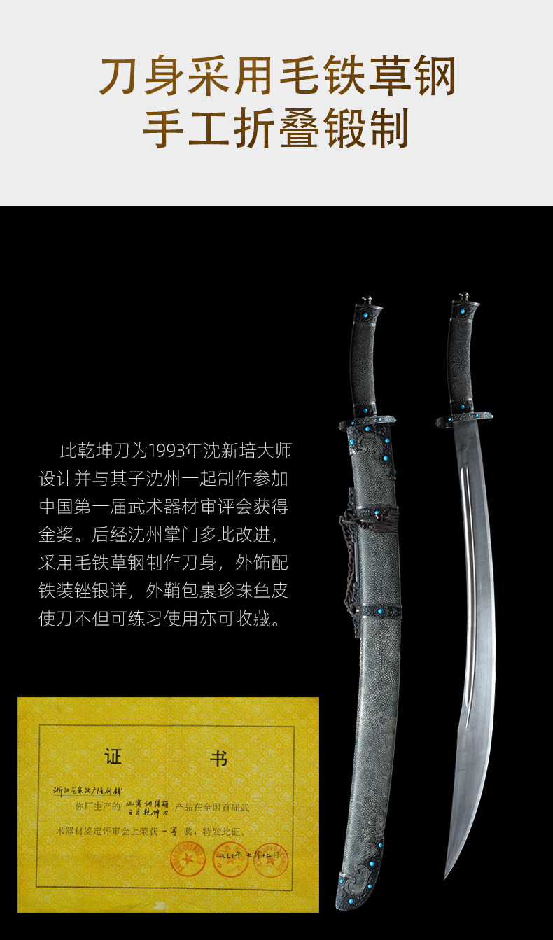 铁装锉银牛尾刀 沈州作品 龙泉沈广隆剑铺宝剑 武术太极刀传统刀 sgl-5039 未开刃