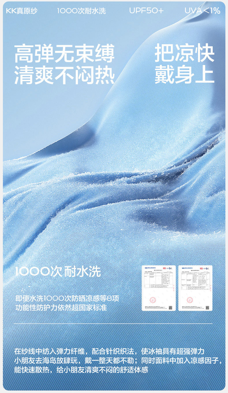 KK树儿童防晒冰袖男童女孩凉感防紫外线冰丝袖套宝宝冰袖夏季透气点点艺术家防晒冰袖