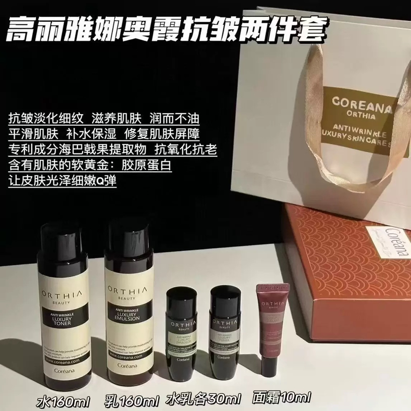 【超值套盒】院线款 Coreana 高丽雅娜肉毒提拉紧致抗皱水乳套盒配礼袋 熟龄肌弱化细纹改善干燥