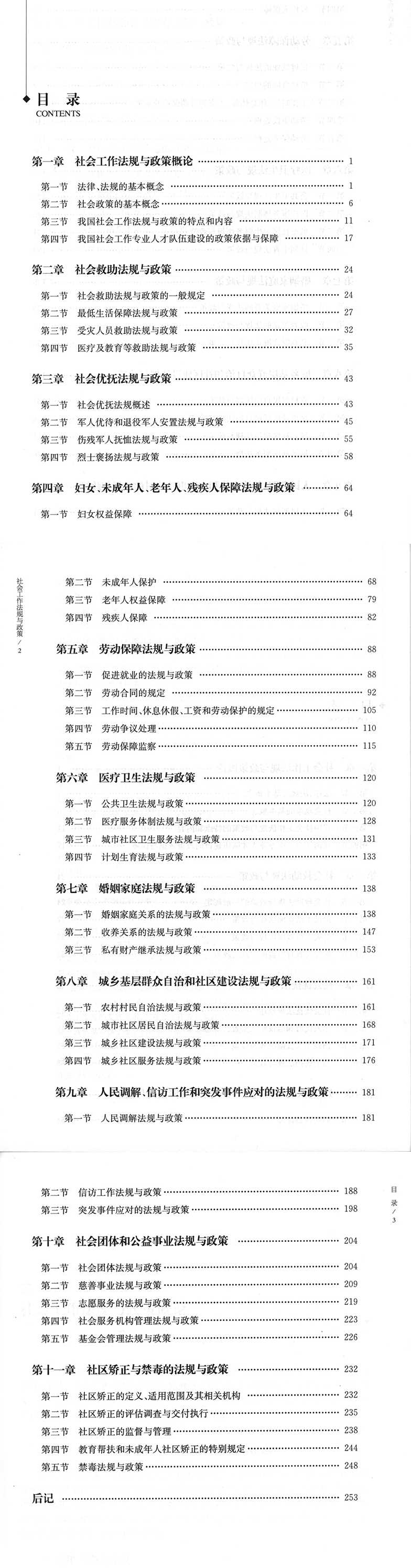 社会工作中的法规与政策,是法学与社会工作的交叉领域。《社会工作法规与政策》围绕着社会工作的服务对象(不同人群的问题)相关的法规与政策工作展开,将社会工作放置于广义的各项法律、法规与政策中进行考察,主要内容包括:法律的基础知识与社会救助政策;社会优抚法规与政策;妇女、未成年人、老年人、残疾人保障法规与政策、劳动保障法规与政策;医疗卫生法规与政策;婚姻家庭法规与政策;社区组织与管理法规与政策;社区矫正;社会团体和公益事业法规与政策。