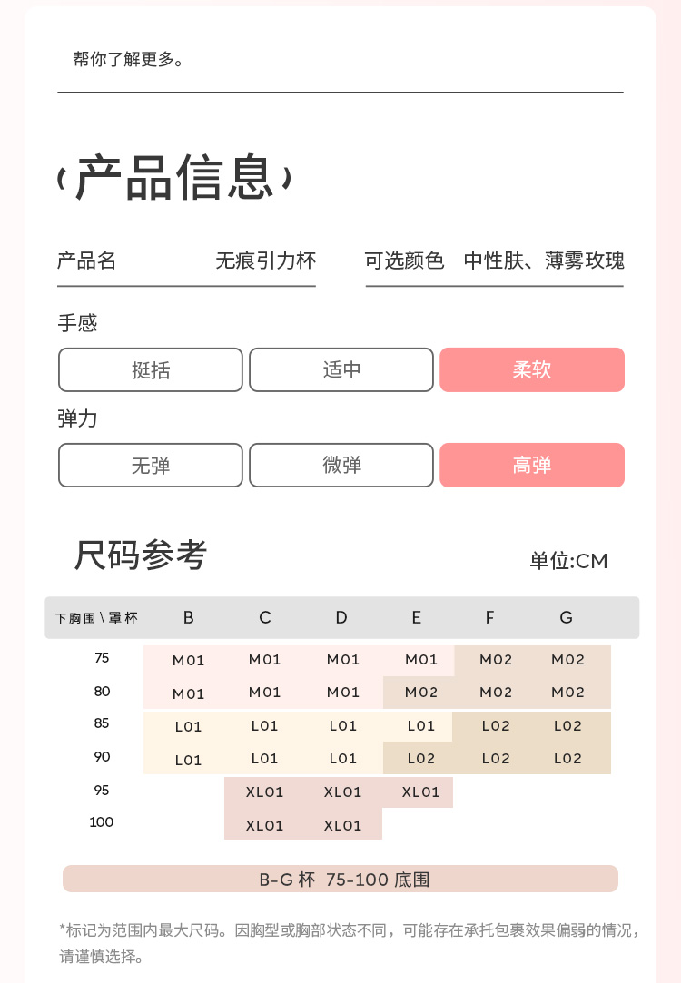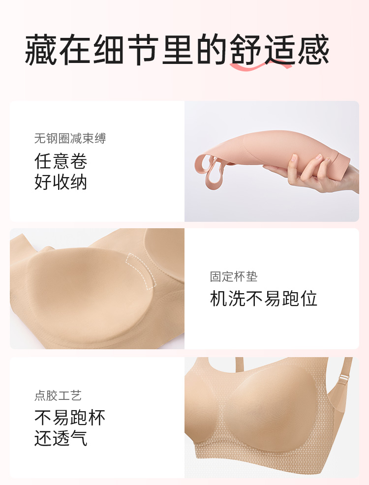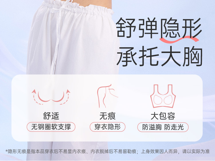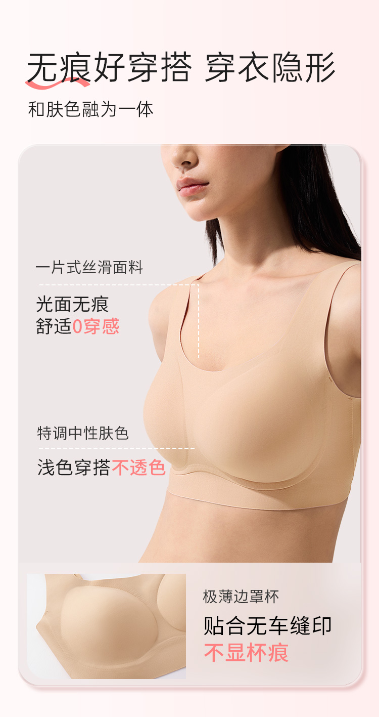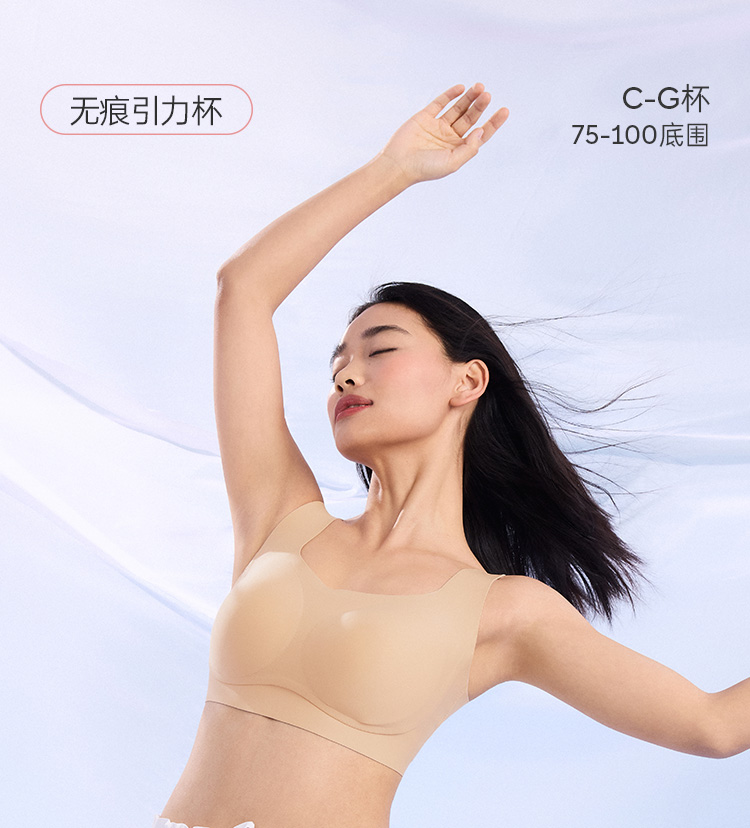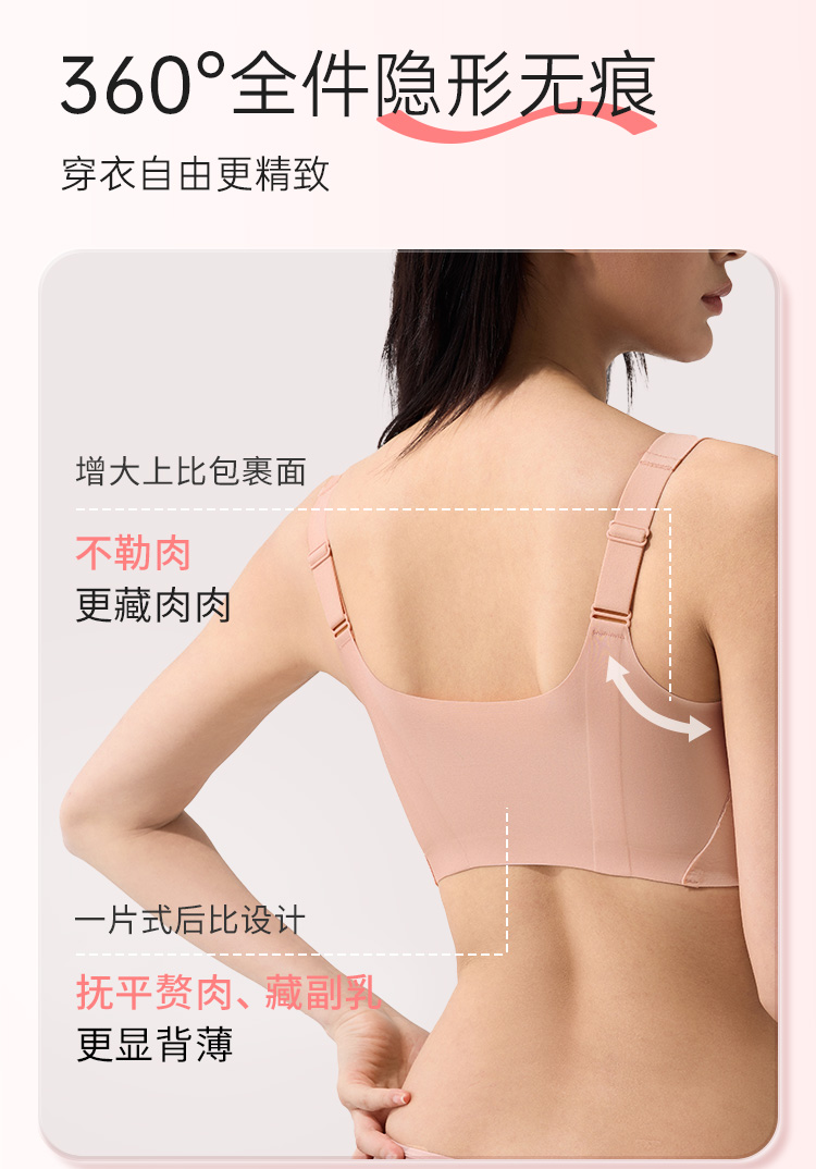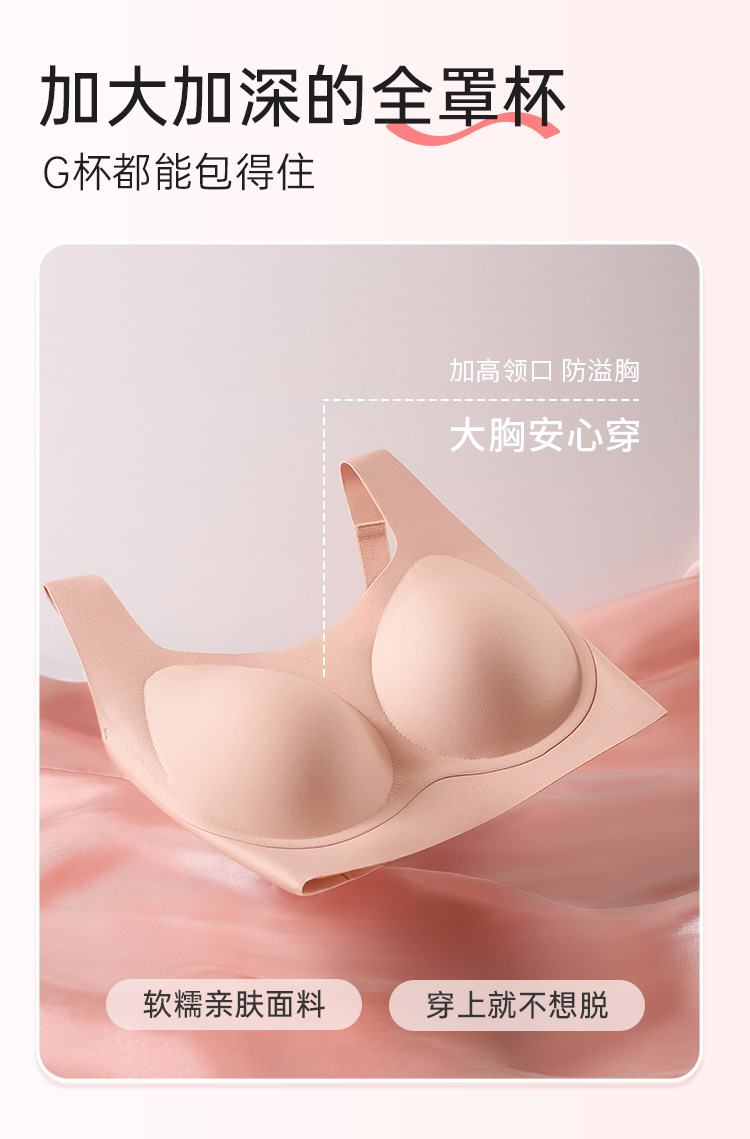 [无痕引力杯]无痕软支撑大胸显小无钢圈光面隐形承托内衣