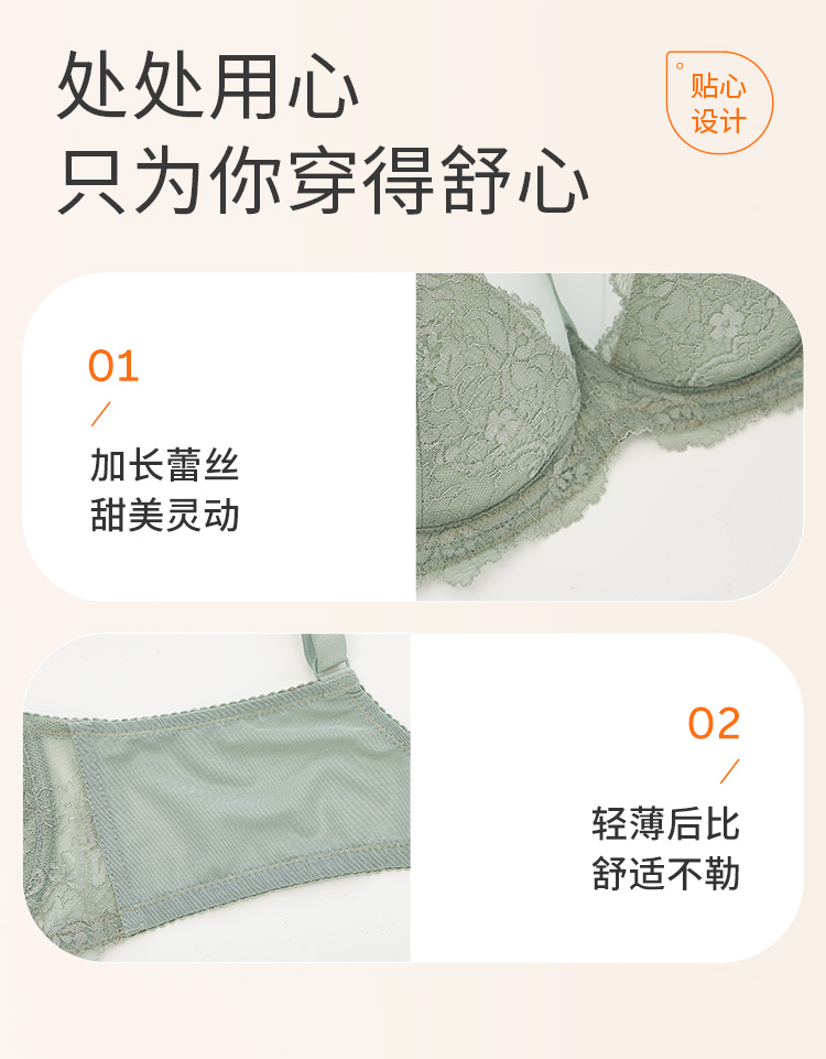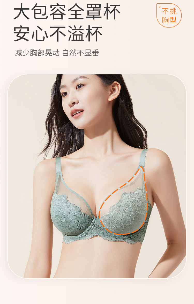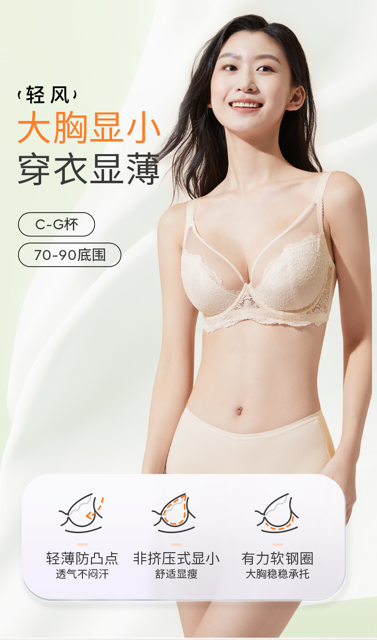 [轻风]全罩杯大显胸小超薄全罩杯蕾丝大码大胸女文胸罩