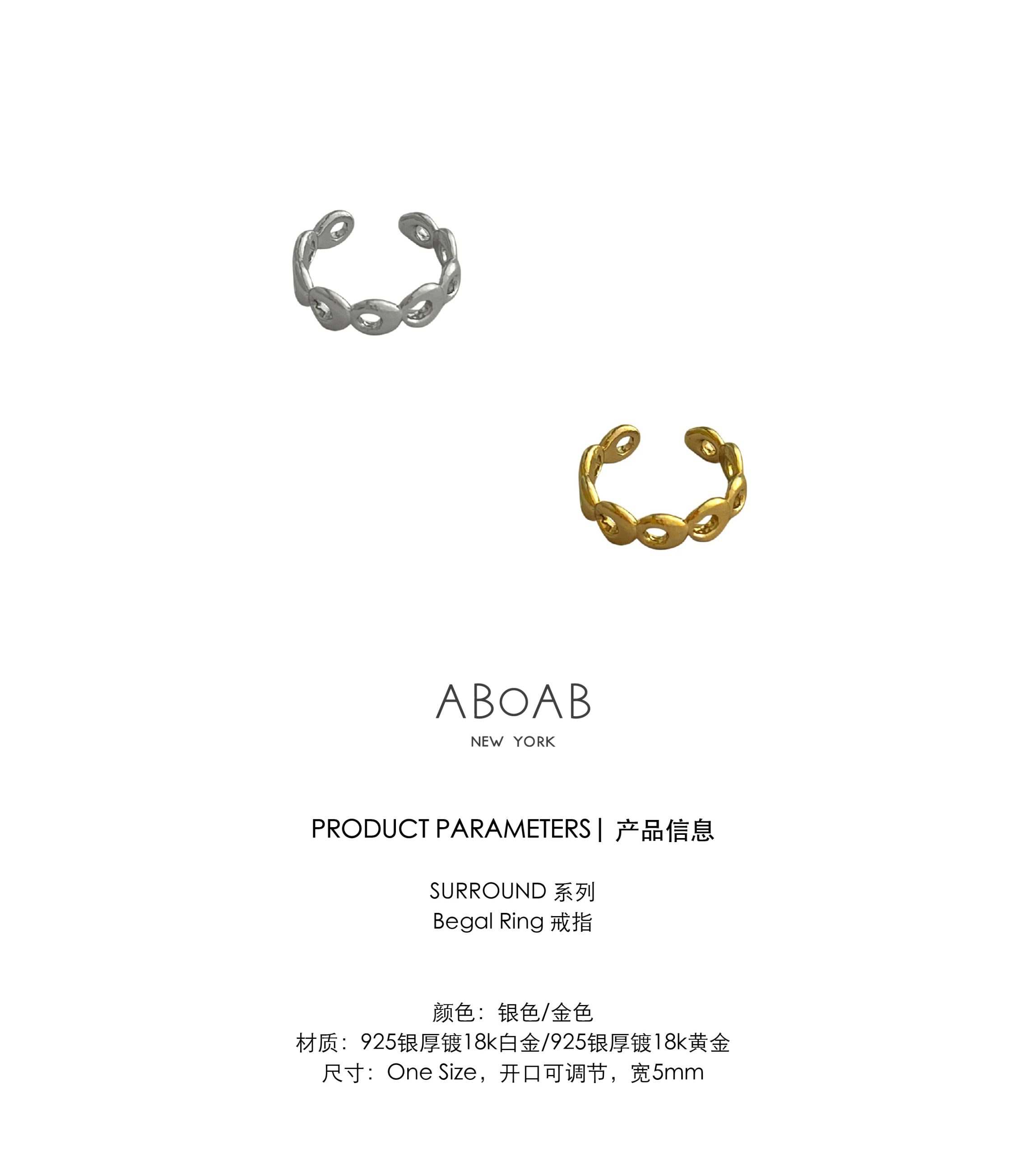ABOAB|BAGEL Ring [ 开口戒指 金 / 银 ]【SURROUND】