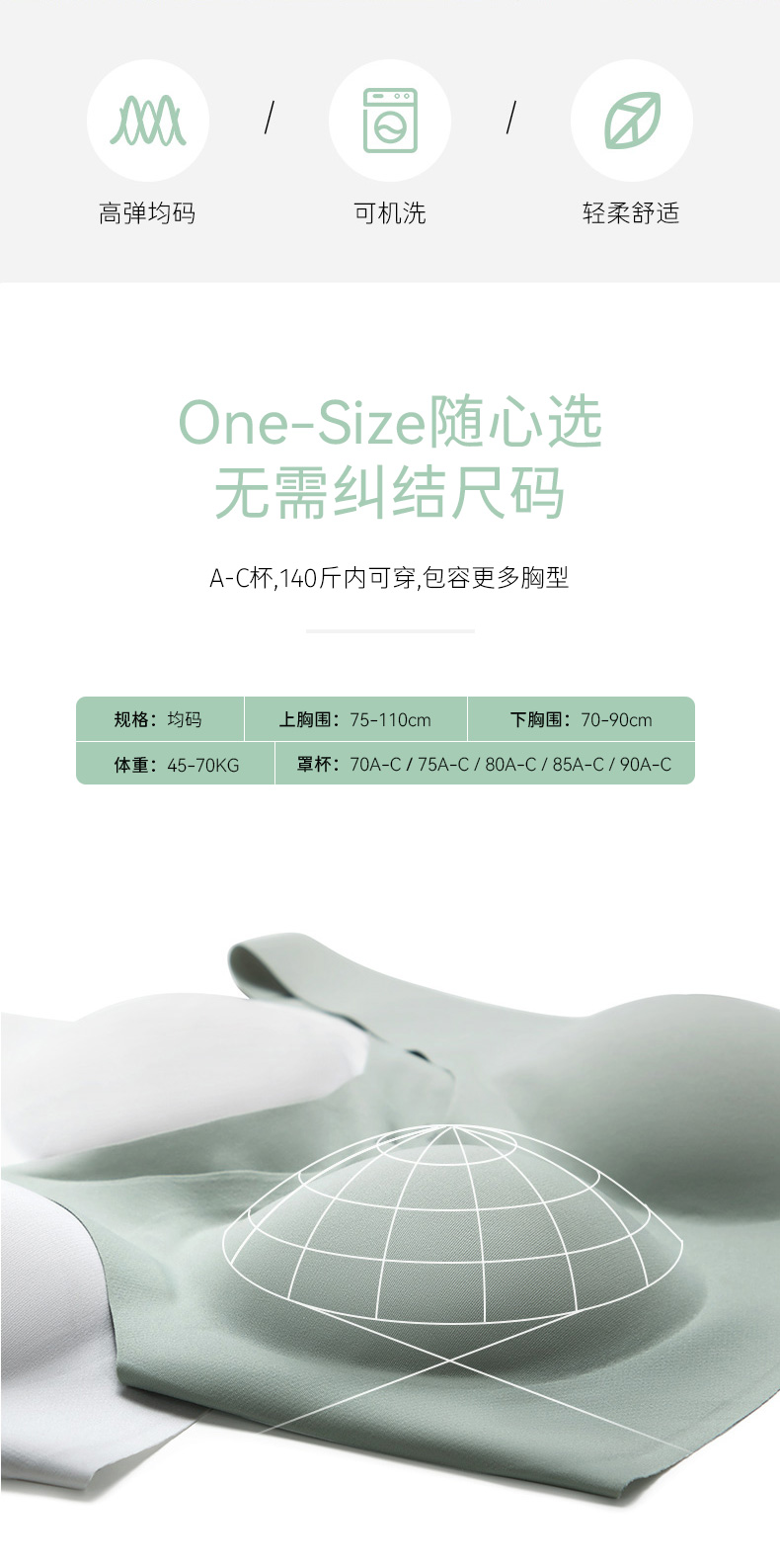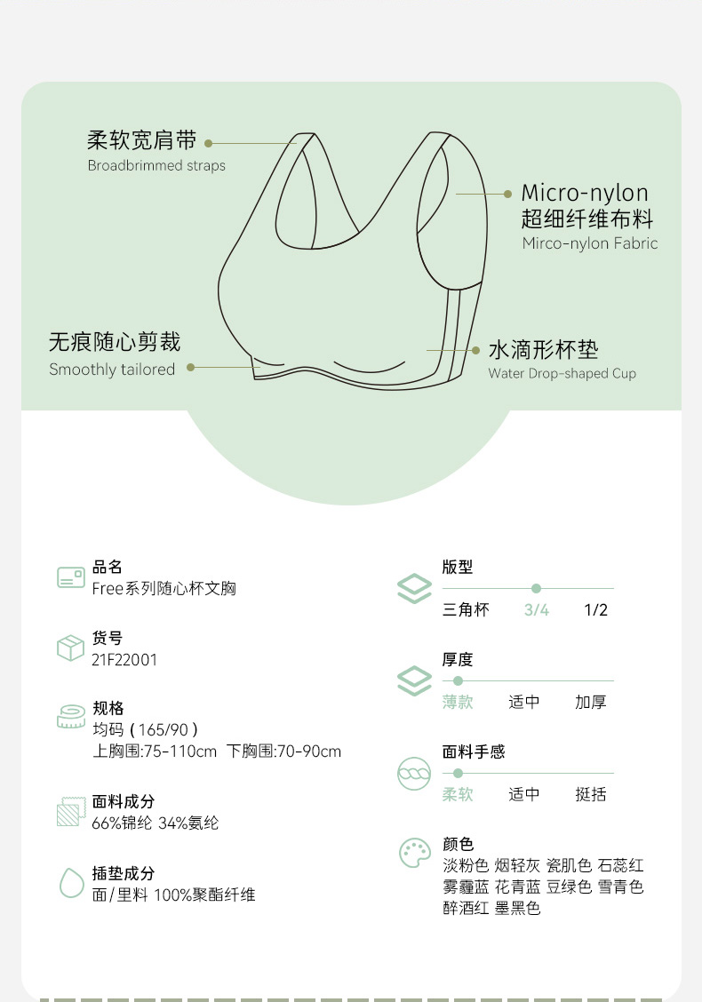 【新品推荐】幸棉随心杯无尺码内衣,Free系列女可机洗无尺码简约文胸无钢圈无痕超薄夏