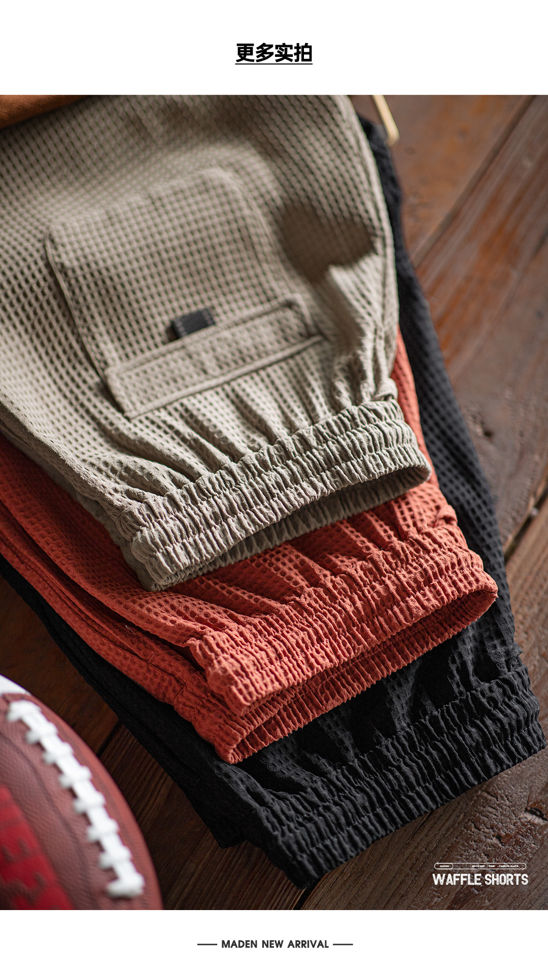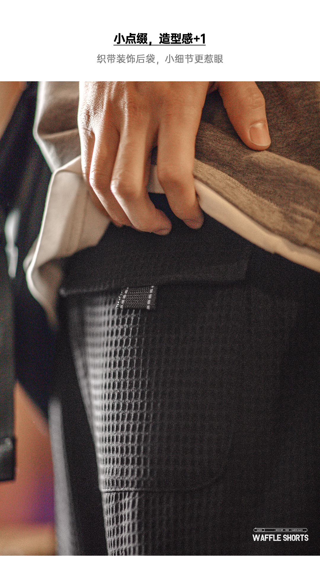 工装优选美式复古廓形华夫格短裤宽松直筒薄款透气五分篮球裤男夏