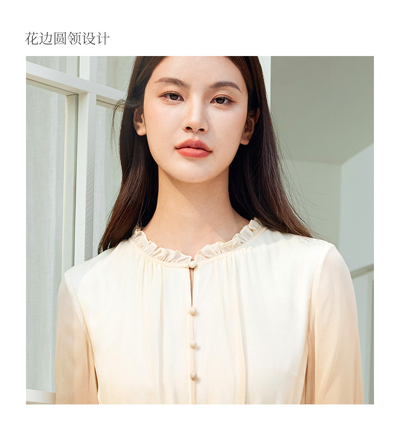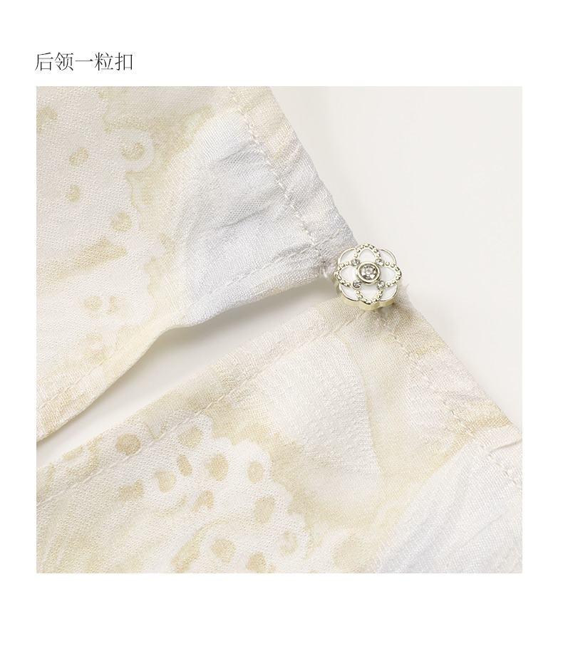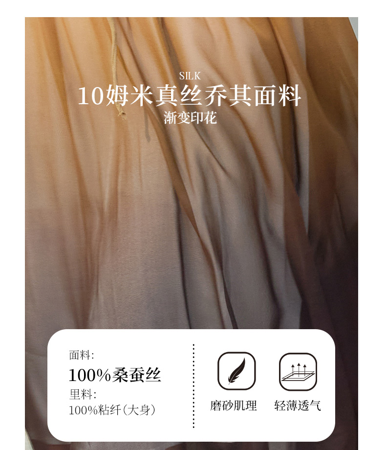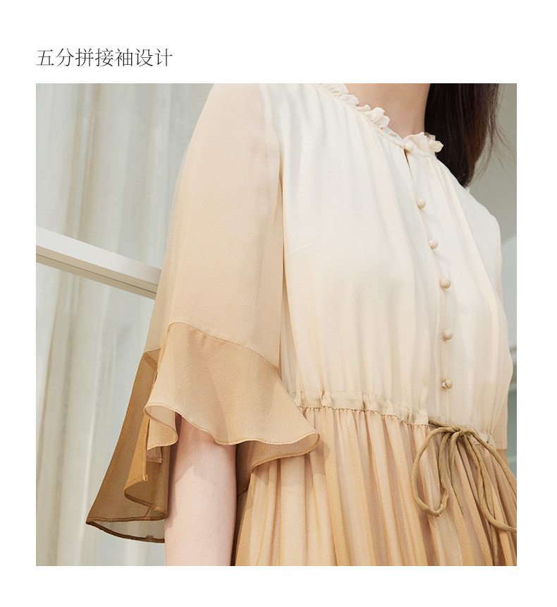 玳莎渐变印花乔其真丝连衣裙2024夏季新款系带抽褶拼接五分袖裙子 EB35309