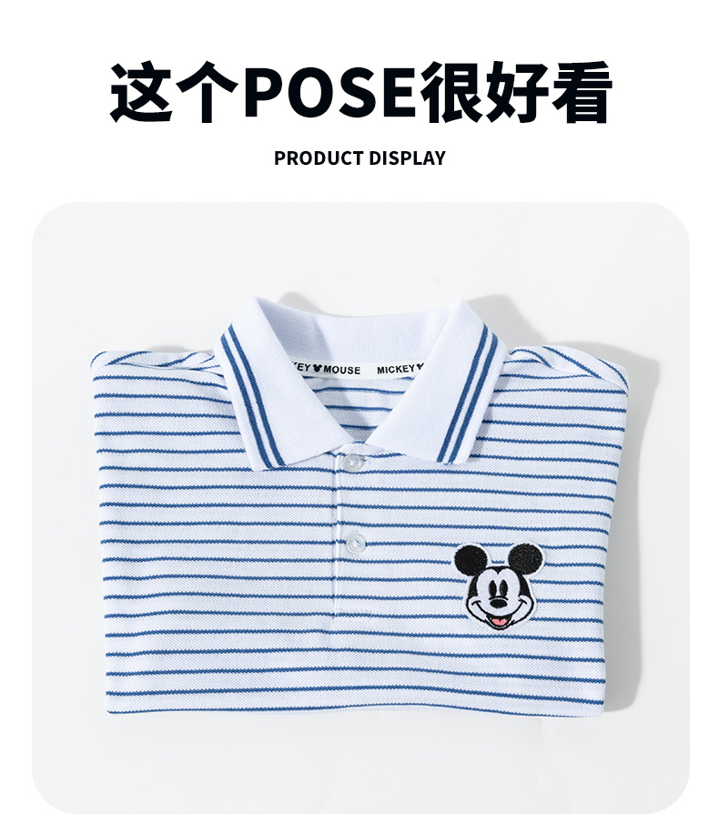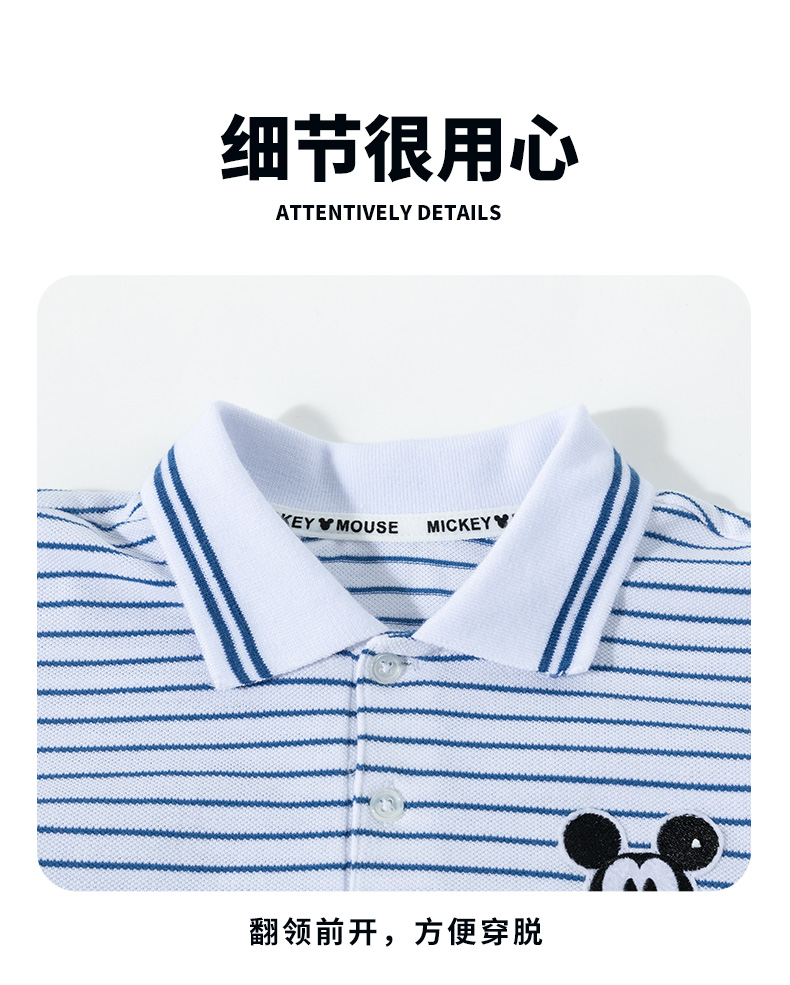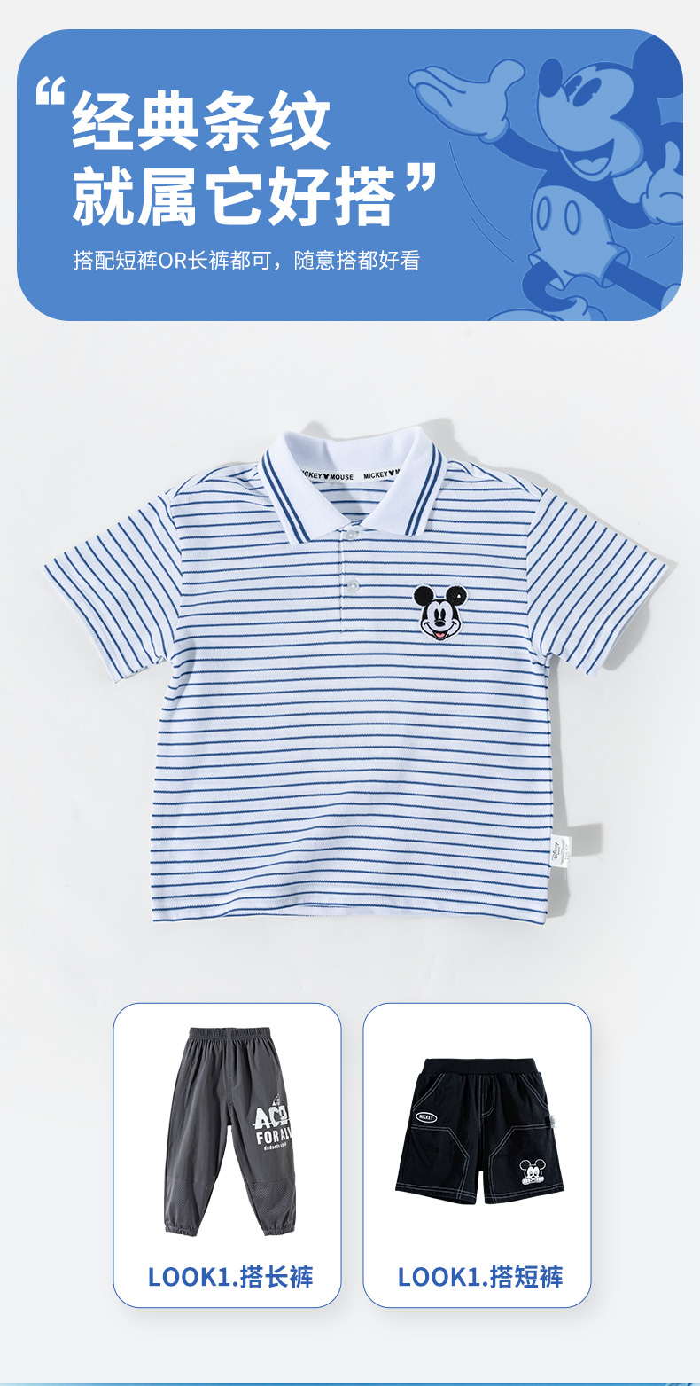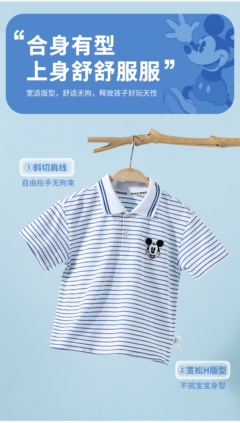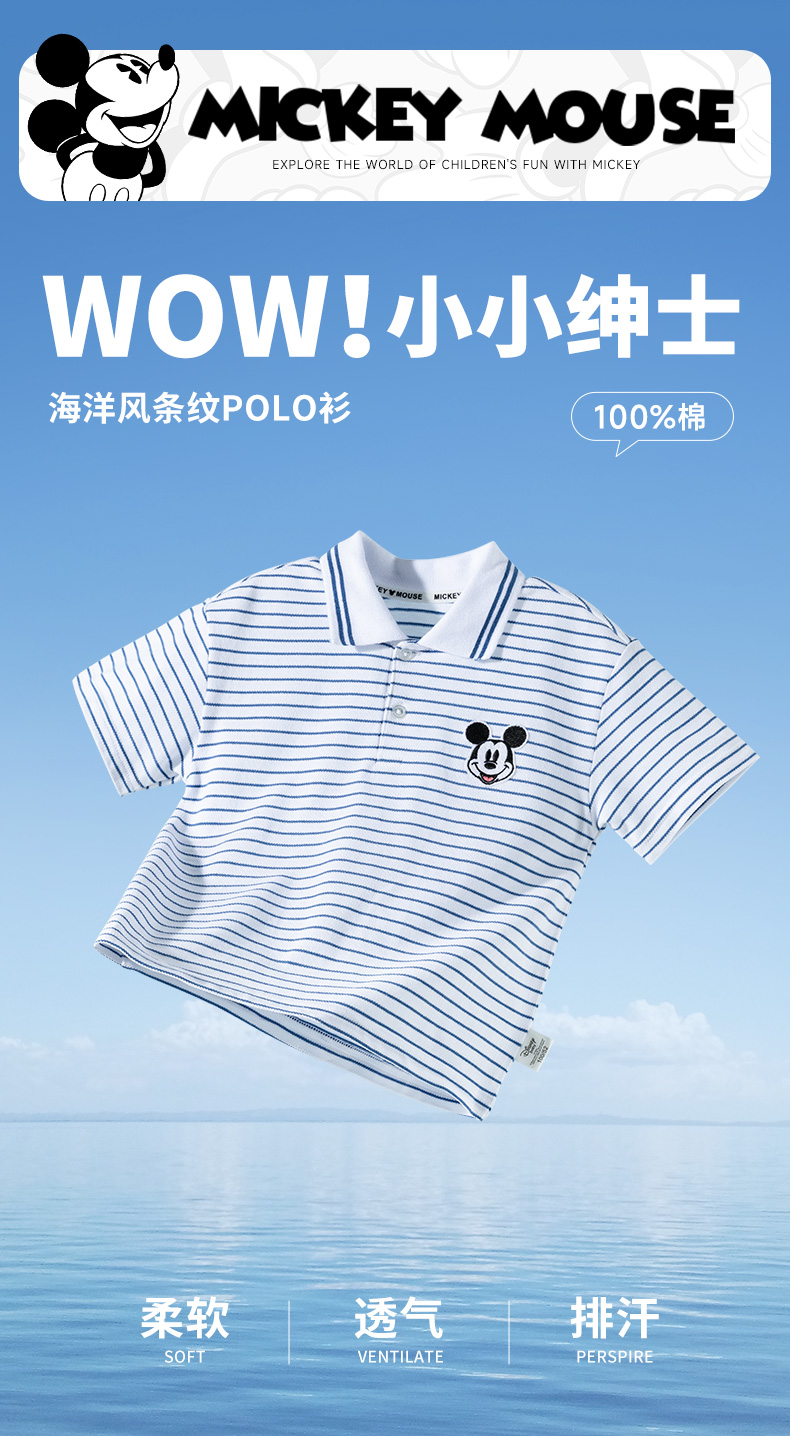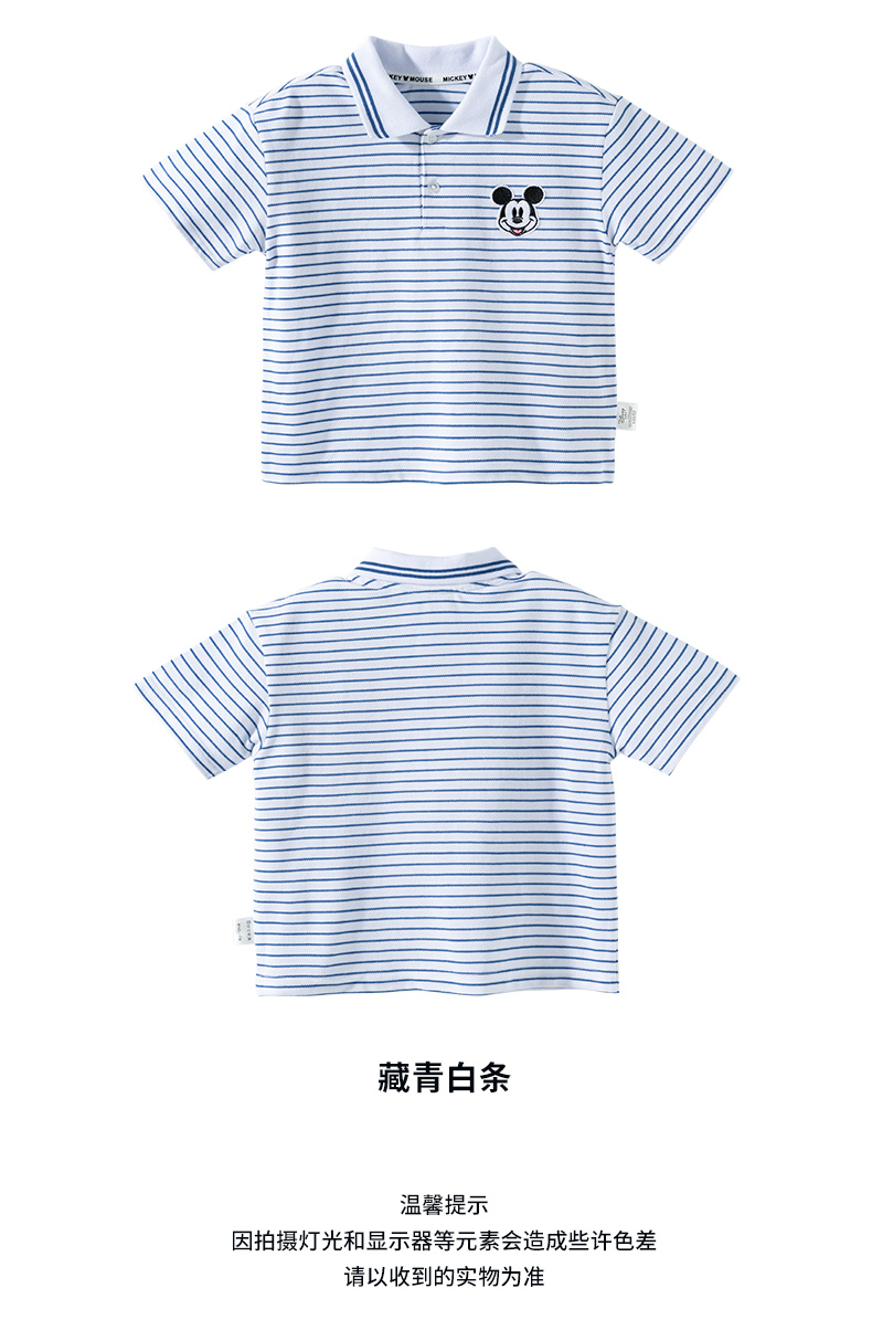 迪士尼【米奇条纹POLO衫】25夏季新款男童纯棉短袖宽松透气T恤ZD2ES027