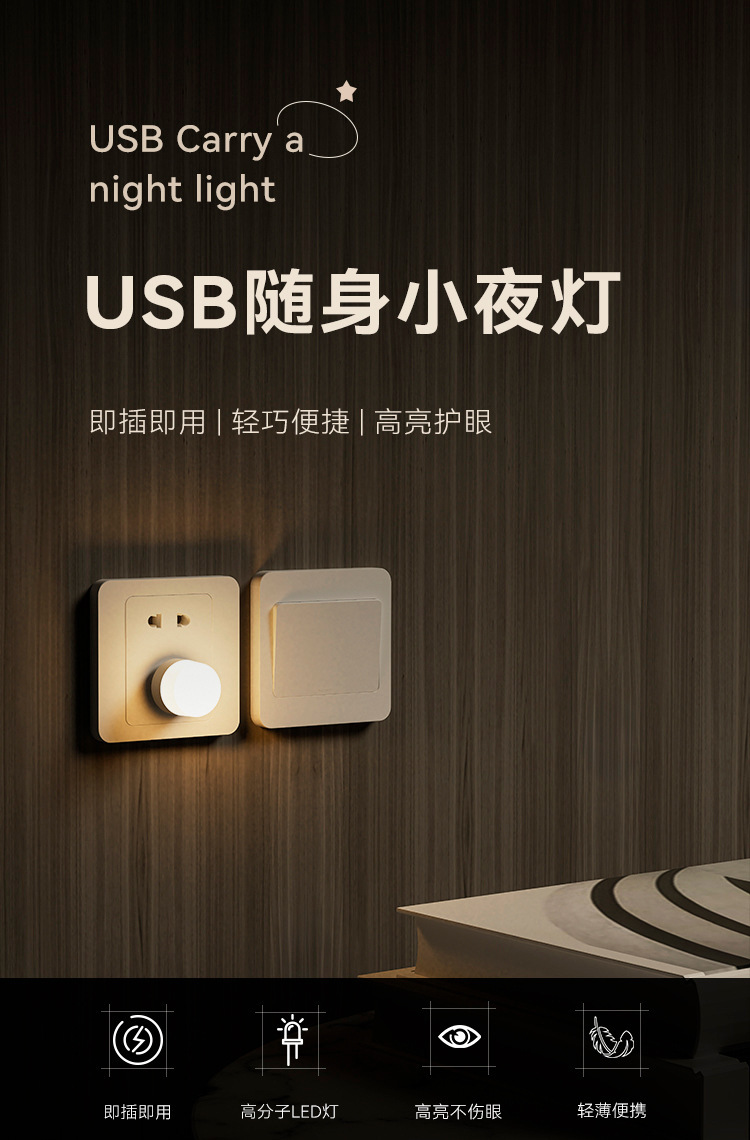 创意USB小夜灯卧室无线床头护眼小台灯插电装饰摆件氛围小夜灯