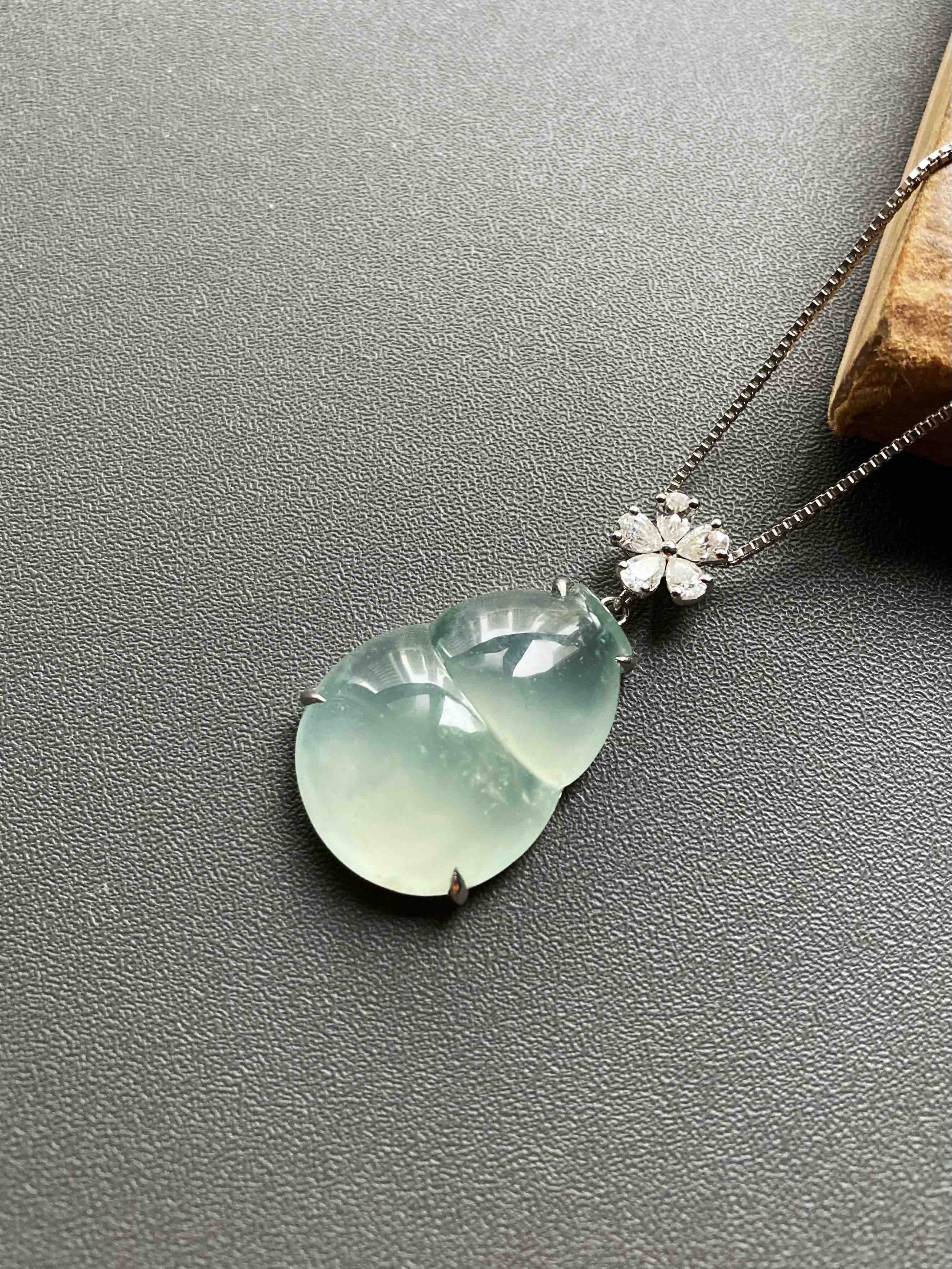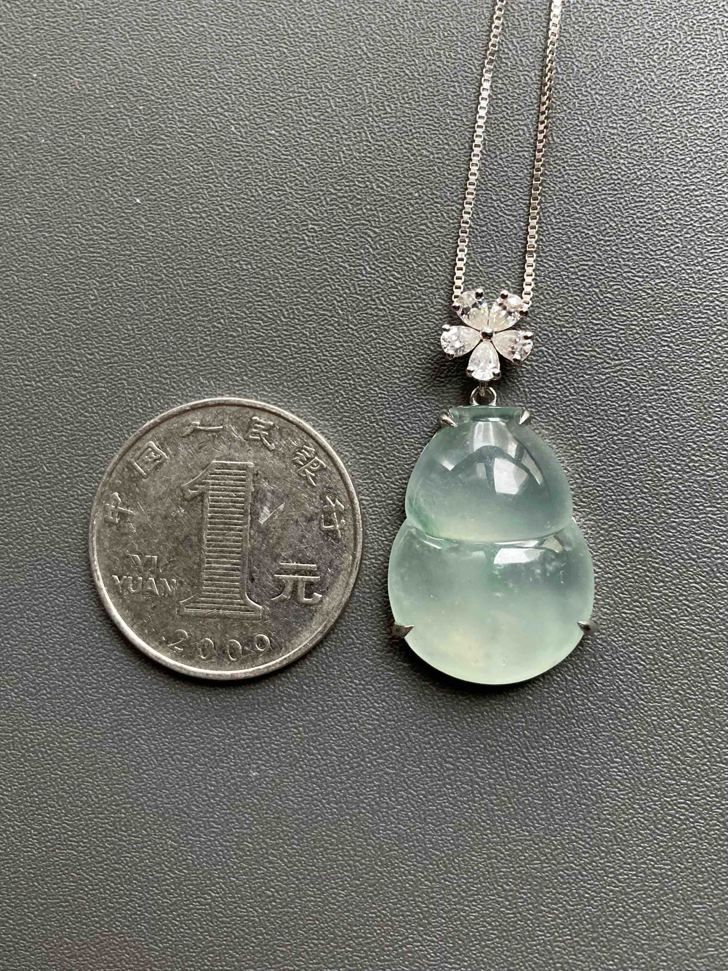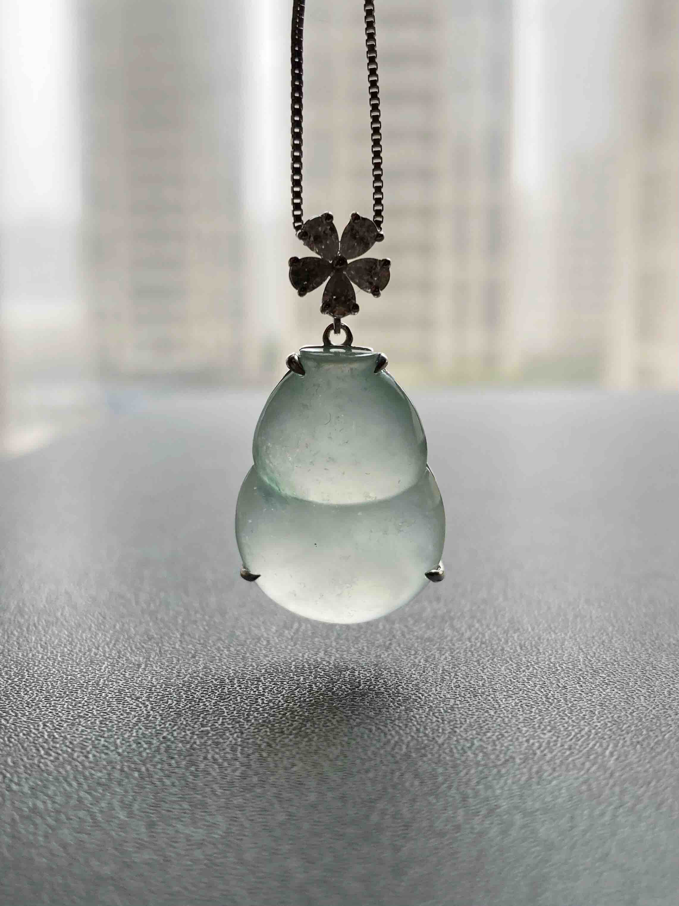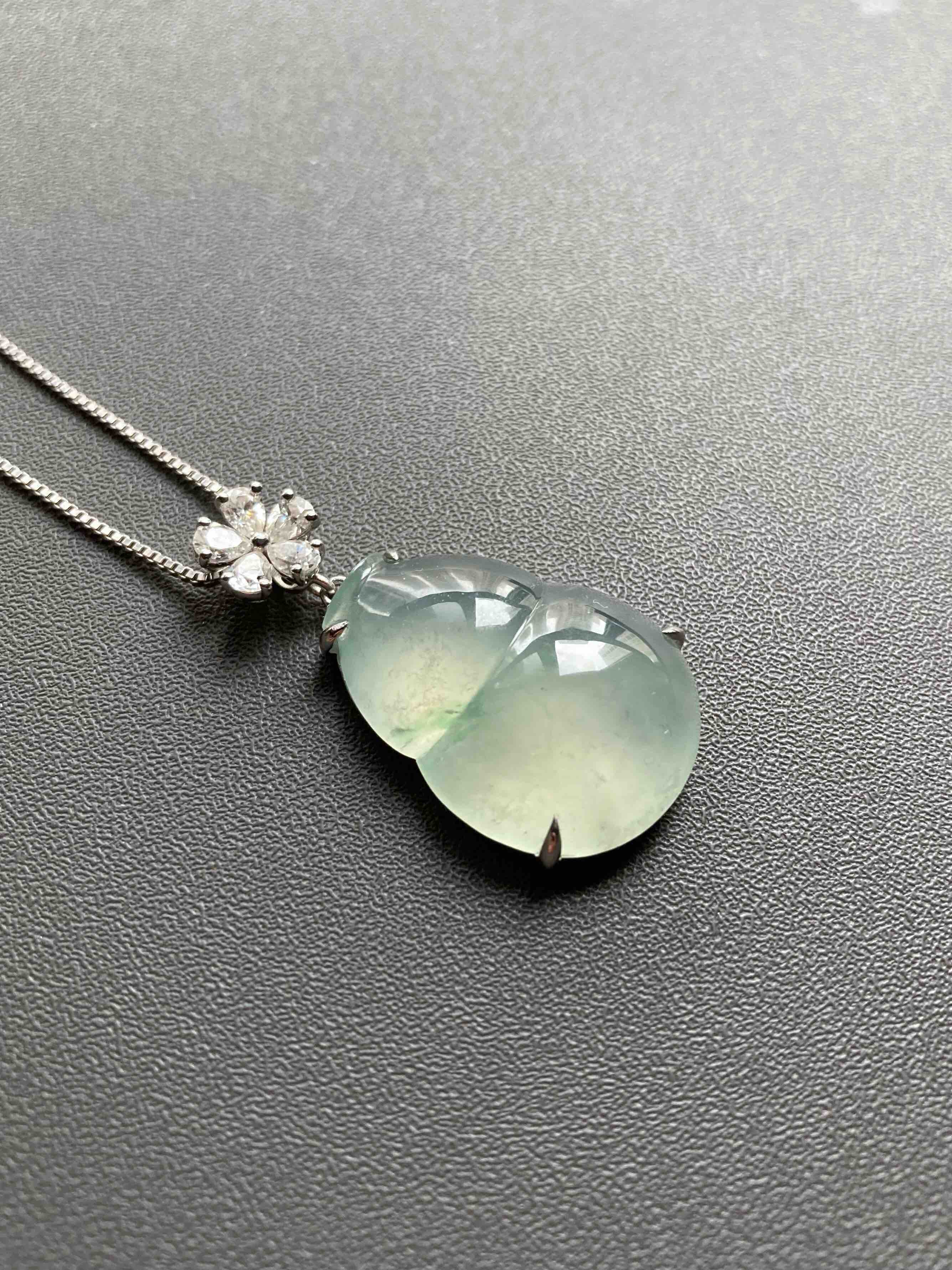 高冰种飘花厚庄翡翠大葫芦18k白金镶嵌
