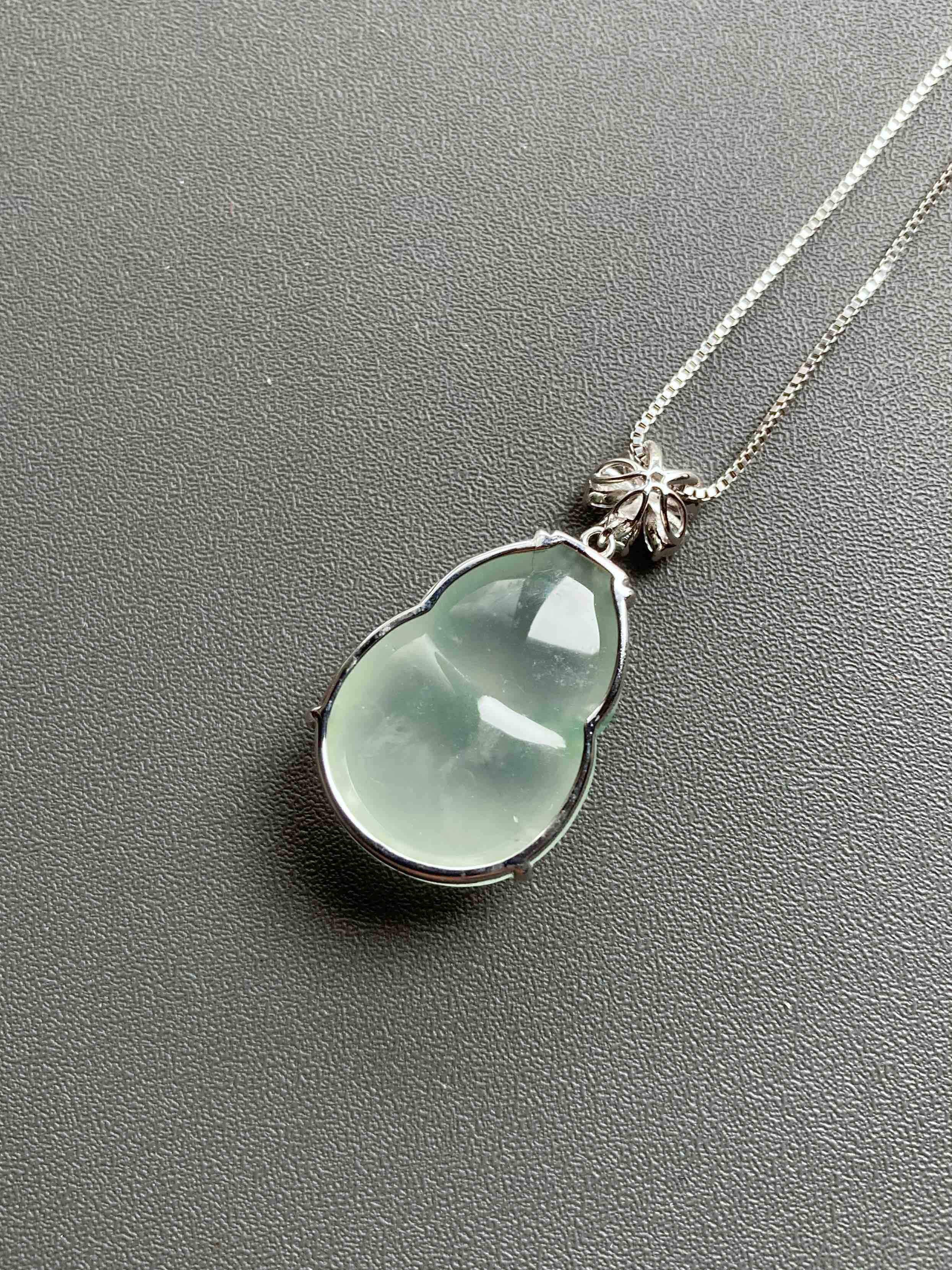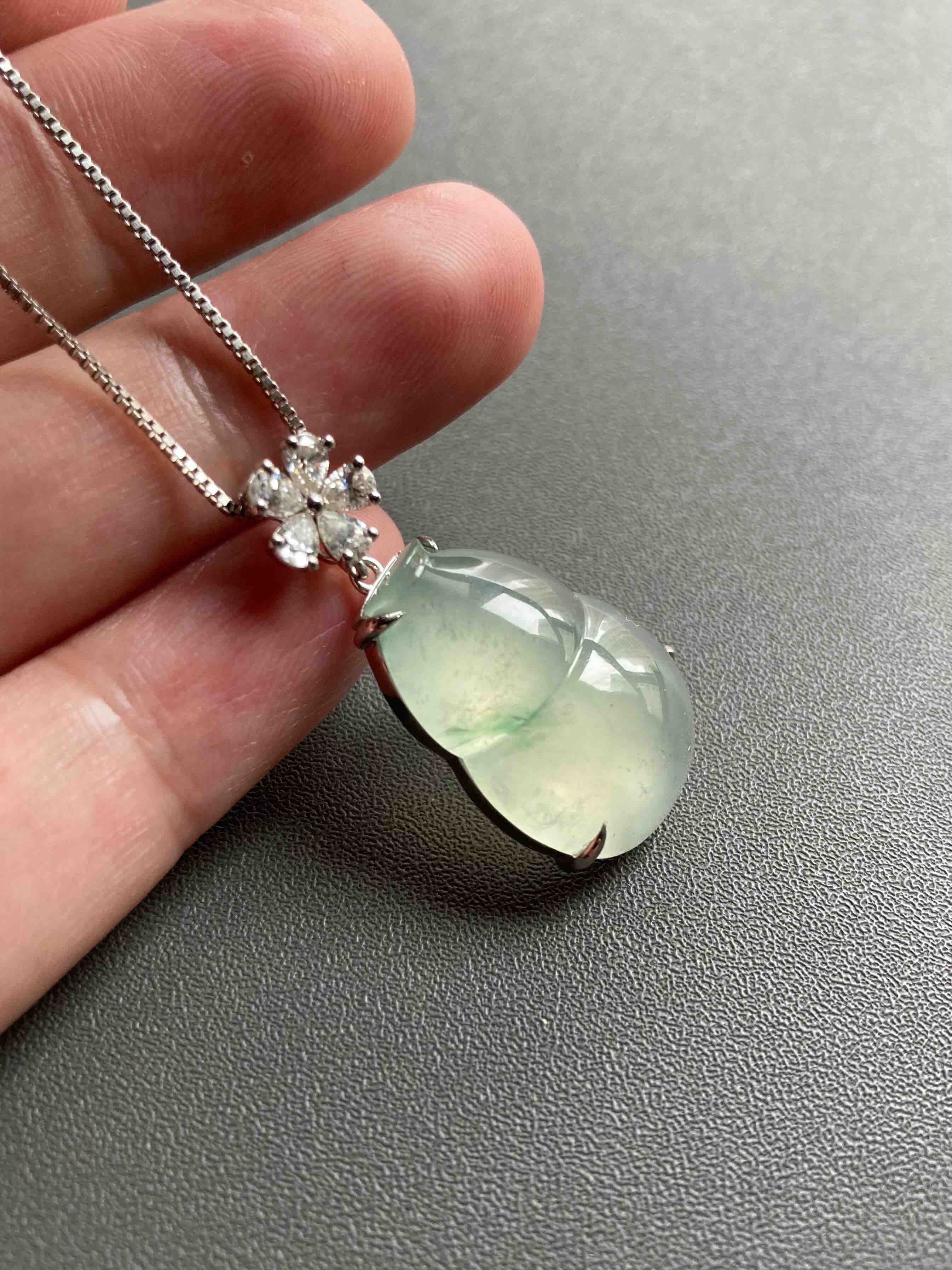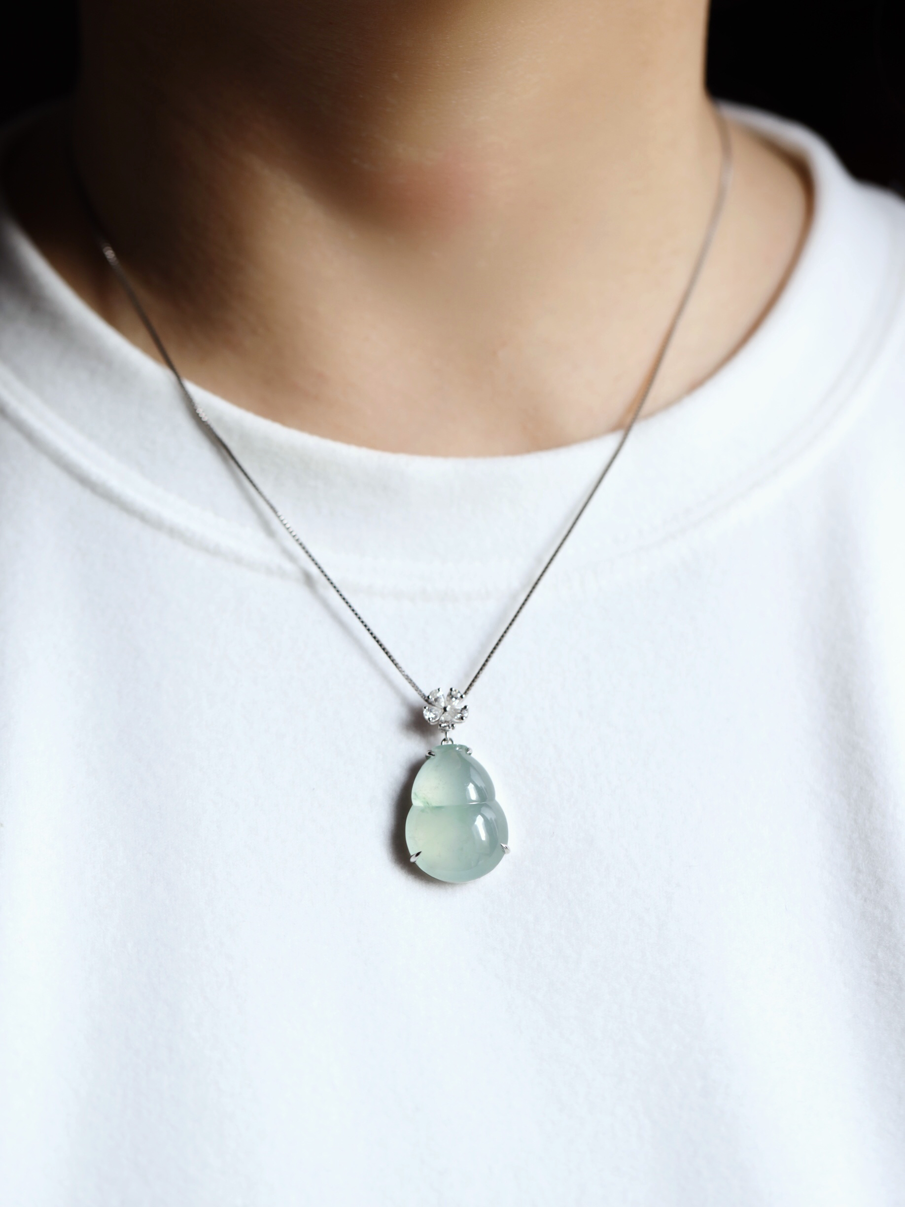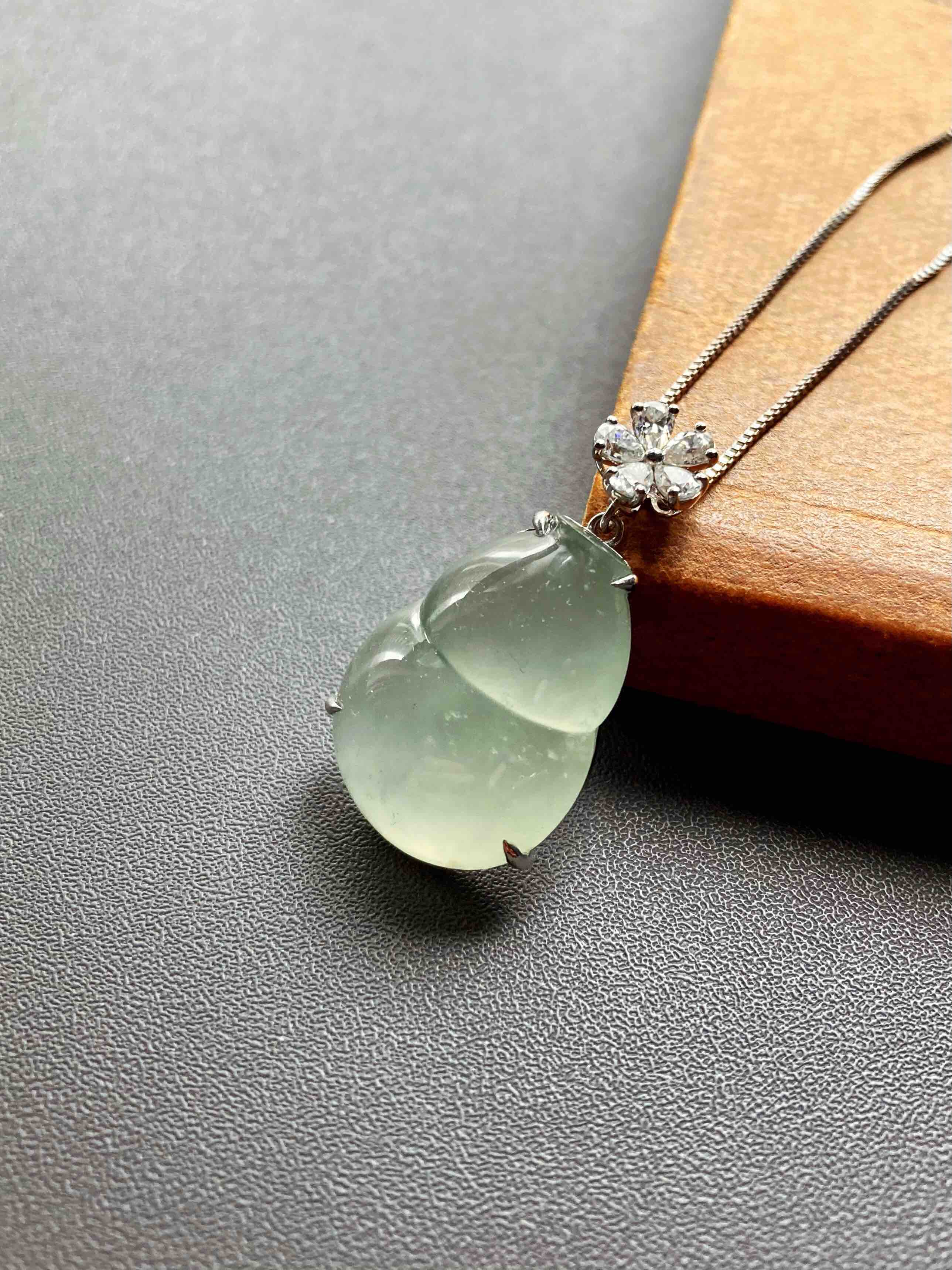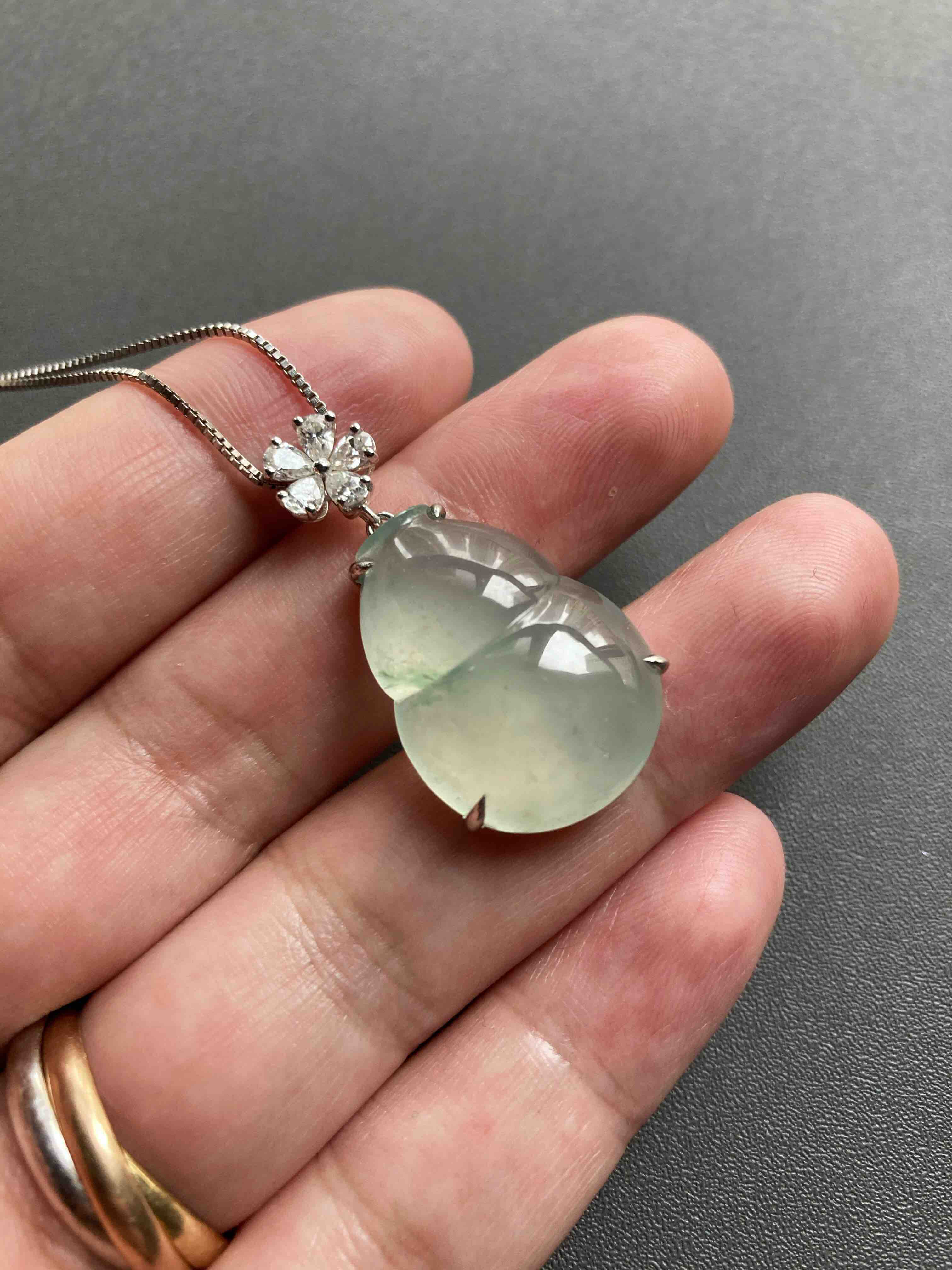 高冰种飘花厚庄翡翠大葫芦18k白金镶嵌