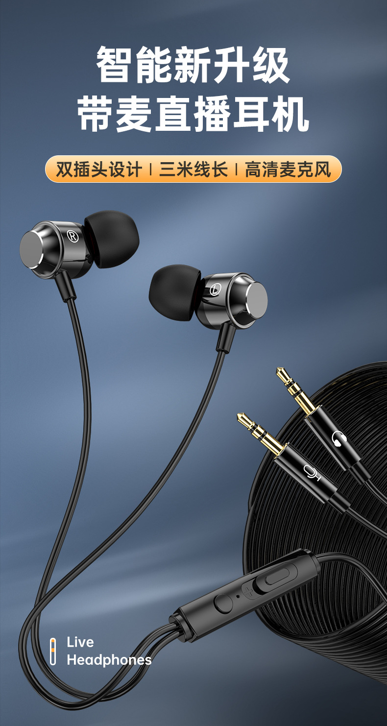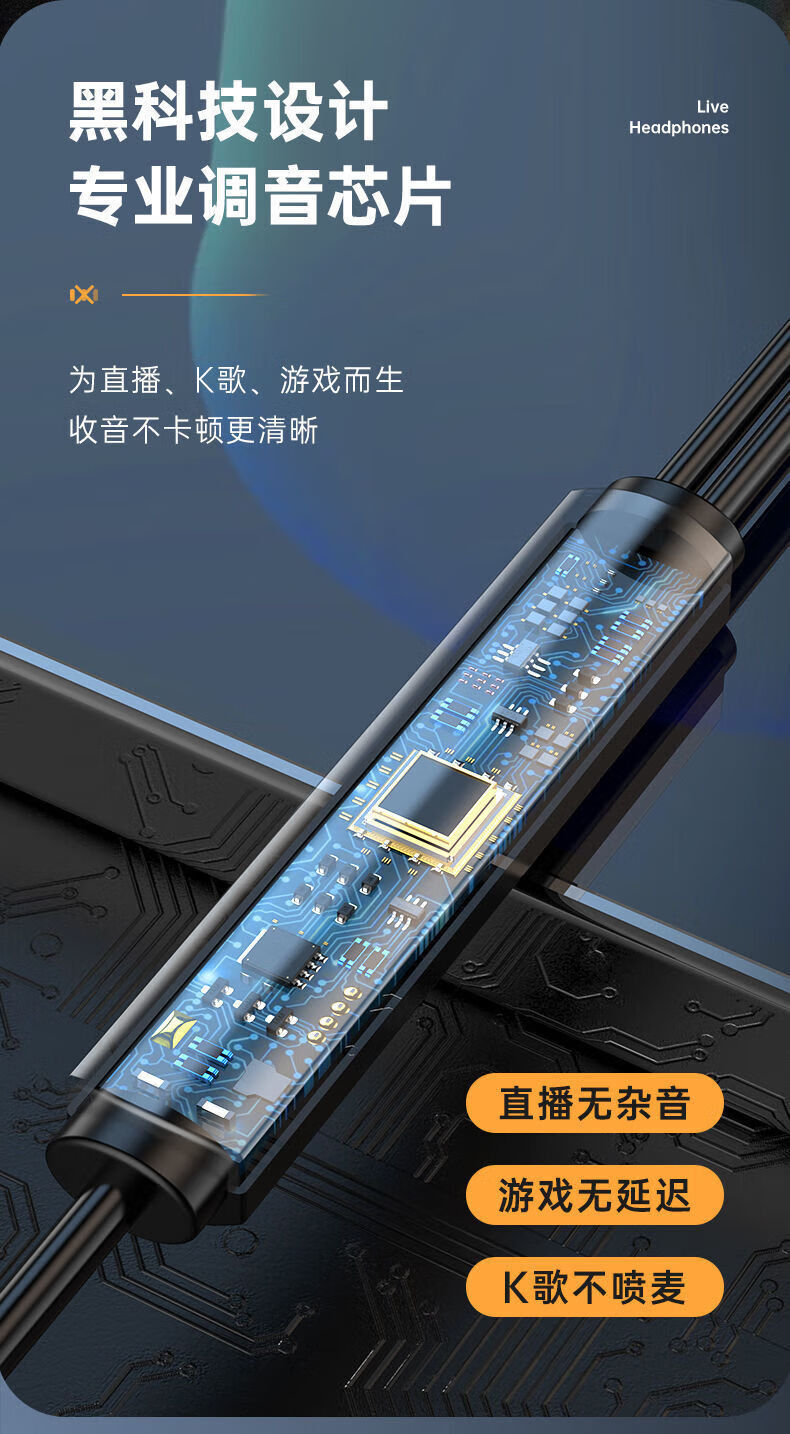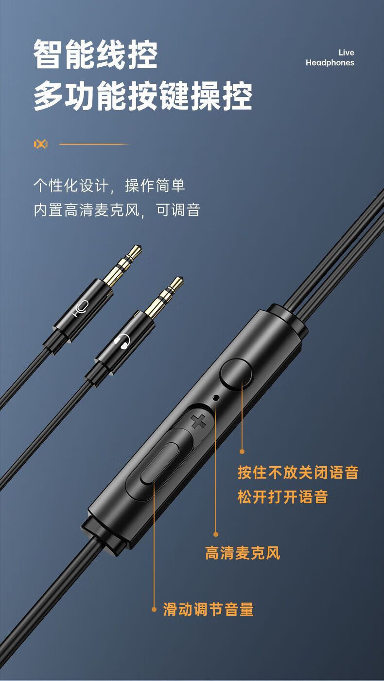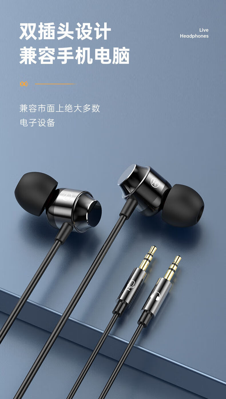 严选【杜比环绕音效电竞入耳式】双插头有线耳机2米加长台式笔记本电脑直播通用耳机-1个