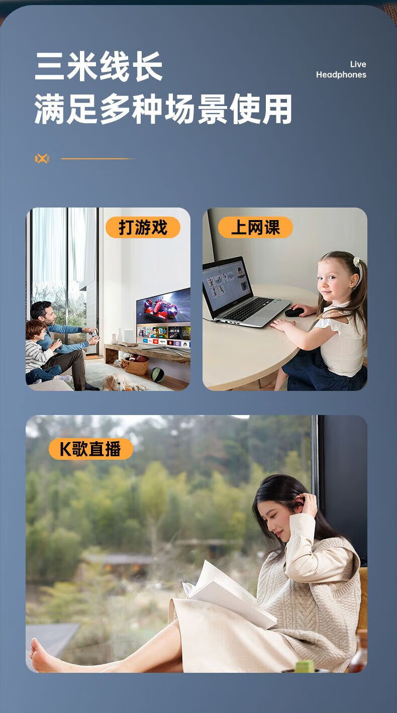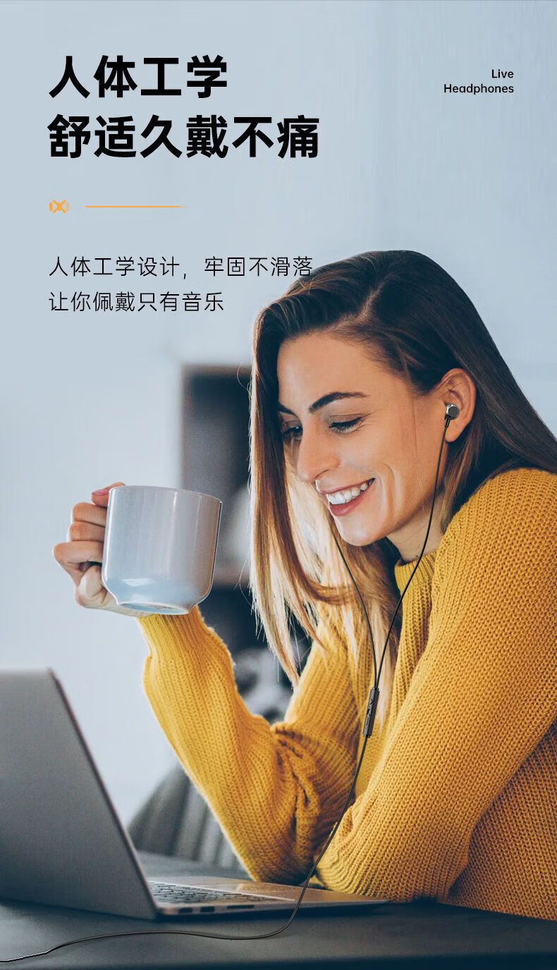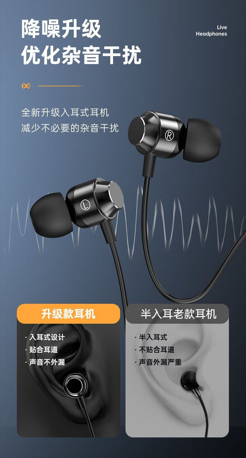 严选【杜比环绕音效电竞入耳式】双插头有线耳机2米加长台式笔记本电脑直播通用耳机-1个