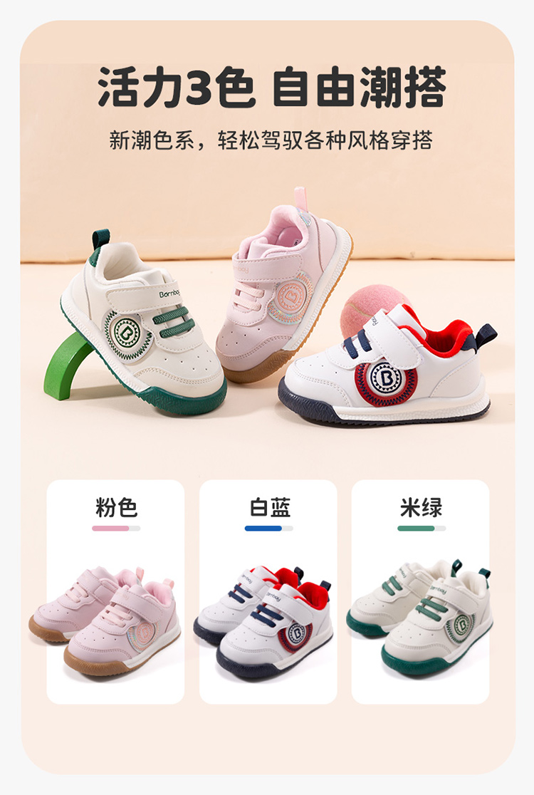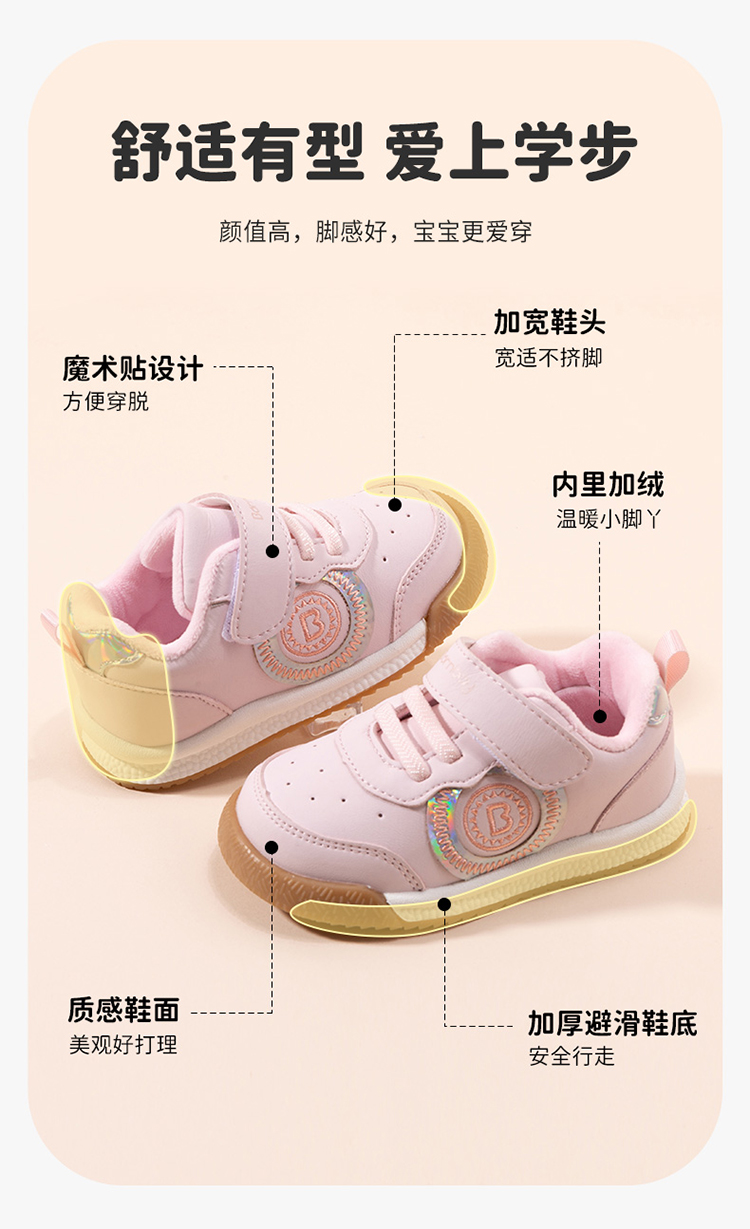 贝贝怡童鞋秋冬新款轻便保暖舒适学步鞋男女童加绒时尚宝宝鞋234X511