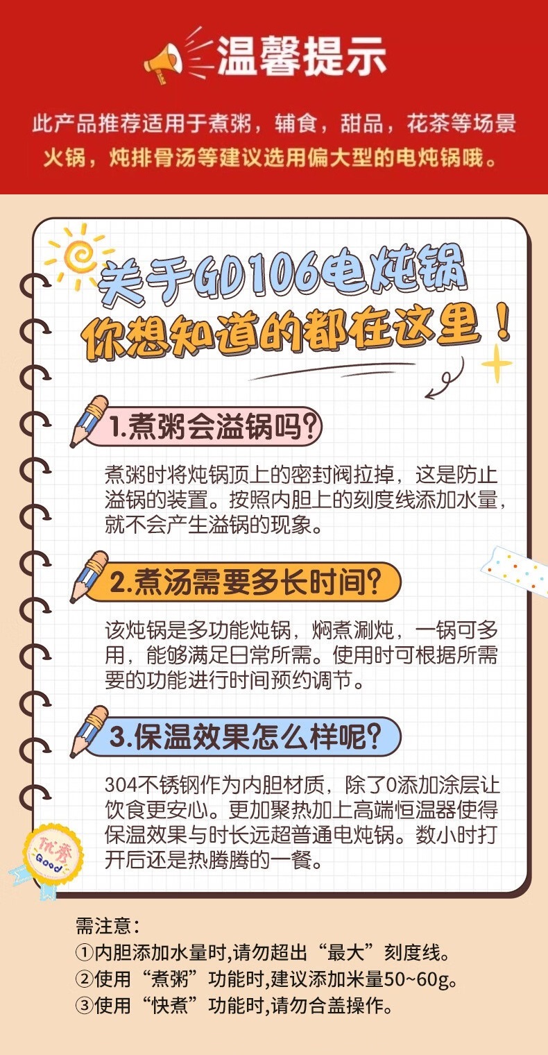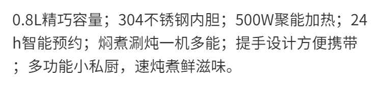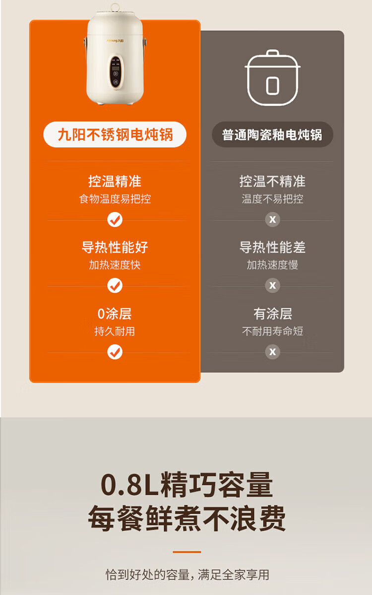 九阳隔水炖电炖锅家用0.8L升燕窝电炖盅婴儿辅食锅宝宝煮粥煲汤锅
