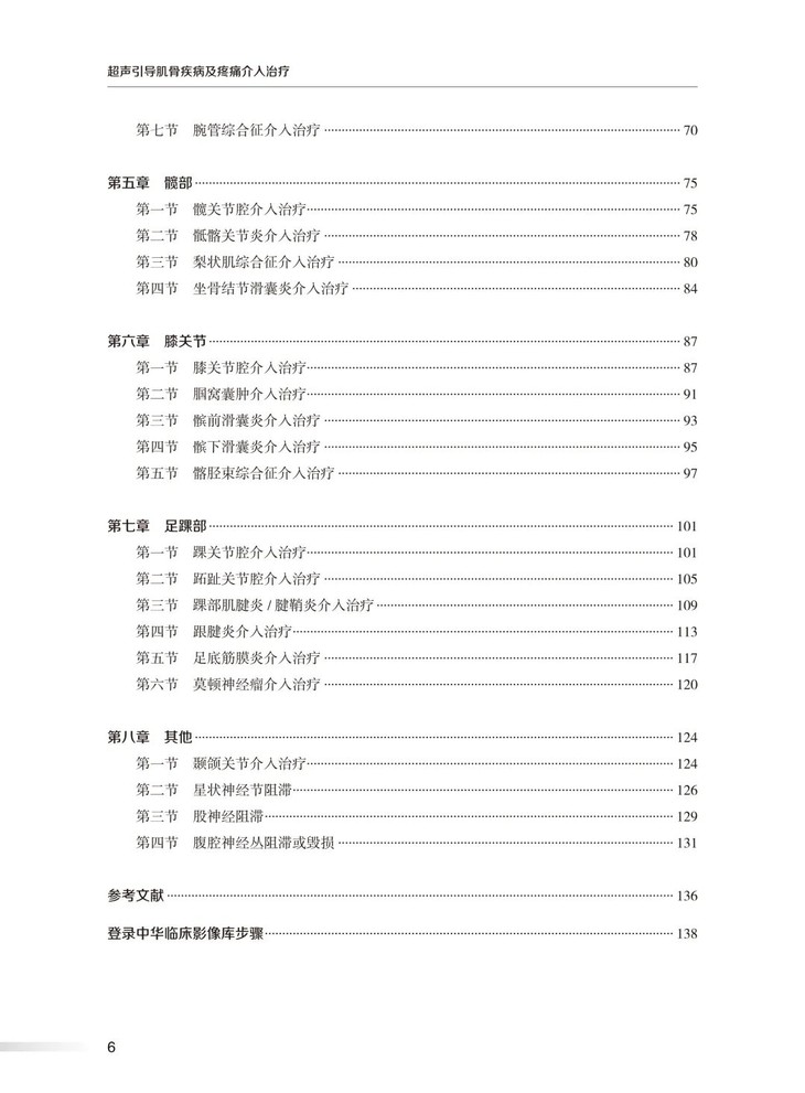 本书将全面涵盖人体肩关节、肘关节、手腕部、骨盆、膝关节及足踝部等6个部位的超声引导下介入操作,包括液体抽吸、药物注射、肌腱腱鞘穿刺、神经卡压松解、神经阻滞等等。各项操作均从相关解剖知识、适应症、要点和操作步骤进行全面地介绍,并插入了大量的解剖示意图、实物图和超声图像便于读者理解并遵照进行实践,对于初学者和有一定经验的操作者都非常实用, 广泛适用于超声科及相关临床科室如骨科、疼痛科、麻醉科、康复科等的医生。