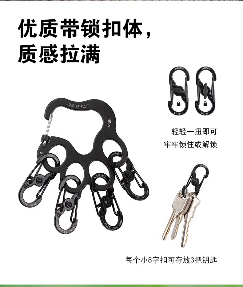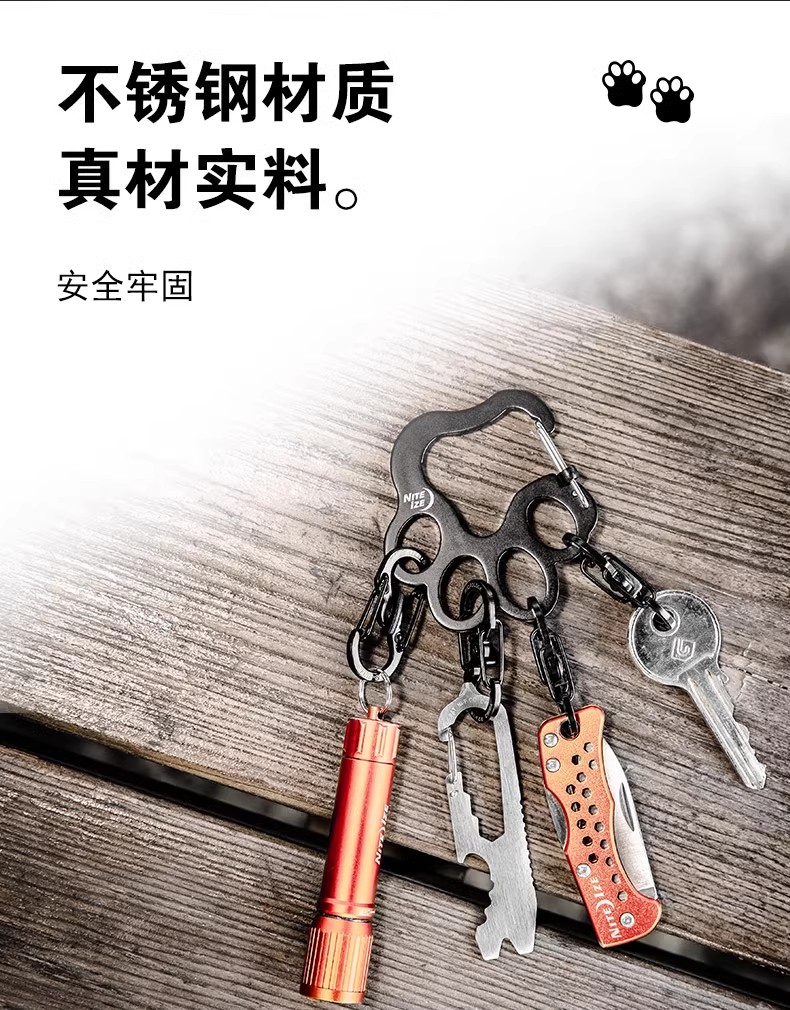 奈爱niteize狗爪钥匙扣不锈钢户外钥匙挂扣创意快挂8字扣防丢快挂
