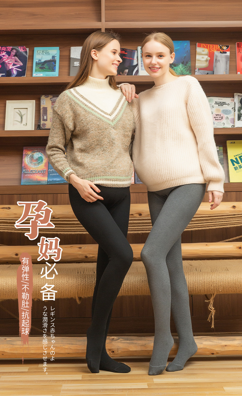 【孕妈必备 束身显瘦 不勒肚】400g秋冬加绒加厚全棉竖条纹托腹可调节一体孕妇裤打底裤连裤袜