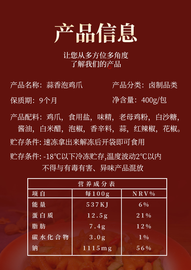 闽味蒜蓉有骨鸡爪卤味带骨蒜香鸡脚400g