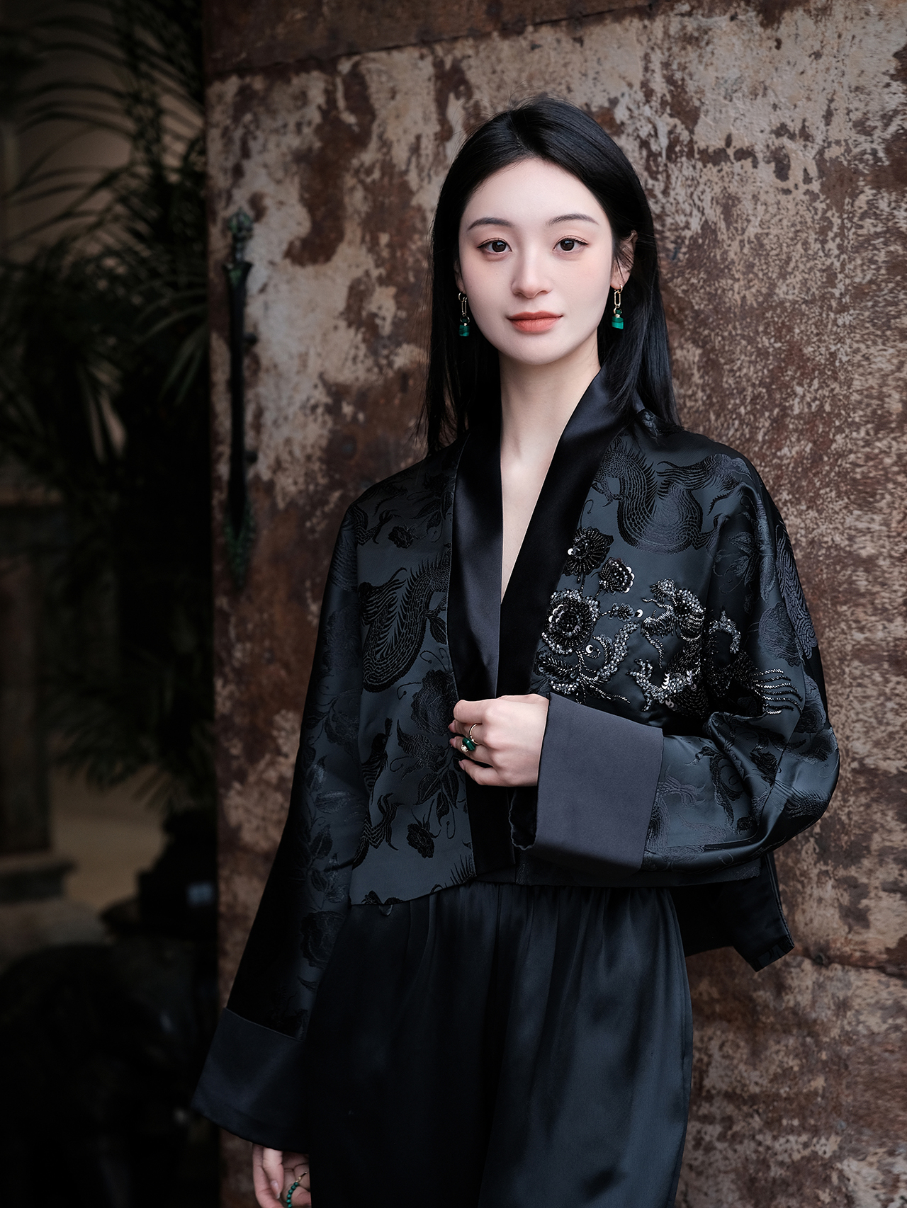 盛唐婧 |新中式丝绒鱼尾半裙-黑色