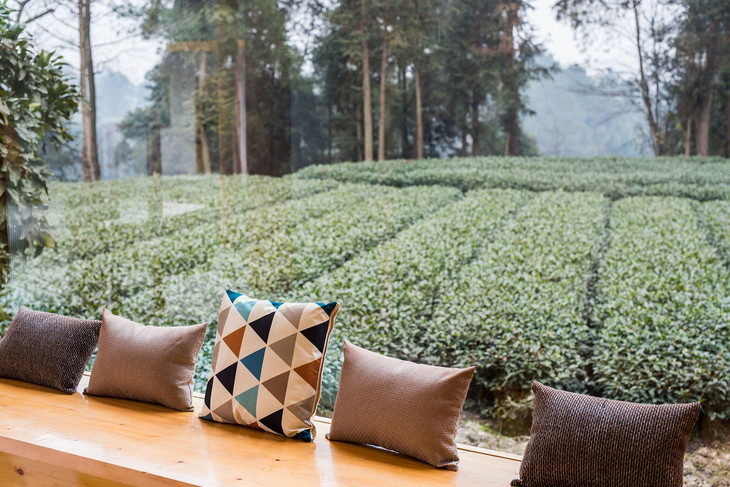 当清晨的第一缕阳光翻过老峨山时,茶谷的蕴气开始袅袅飘起,穿过轻薄的雾气,阳光逐渐把这座世外茶乡唤醒,你和茶谷慢慢地苏醒过来,即将开始与众不同的一天。茶谷恬静,羞涩,深闺在雾蕴缭绕的茶乡深处,与世无争,是我们在别处未曾见过的画面。茶谷中央一条小溪穿流而过,层层叠叠的茶田像阶梯一样延伸到无限的远方。当夕阳将最后的余晖洒满山谷之时,远方的川藏线幽幽传来火车的汽笛声,让人不禁怀疑时间是否在这里早已停止。这可能是你第一次用这样的方式打开乡间的早晨,一不小心就在鸟鸣虫唱声中睡到了自然醒,空气中满满的茶多酚和负氧离子让人起床后觉得神清气爽,如果足够幸运,还能抬眼望见延绵的雪山。这里的清晨显得异常宁静,掐指一算你可能许久没有睡过那么踏实的一觉。山谷之上,茶田中间,四周有大片的银杏树和松树林形成天然的隔断,院落的一角能一眼望见整个茶谷,而院落尽头的茶田又如此触手可及。白天的小院是一座乐园,让你在这里回归自然释放天真,夜晚的小院是一座灯塔,为你用心守护每一个良夜。这里没有城市的灯火辉煌,但是有隔岸观火的泰然;这里没有星级酒店的浮夸,但是有原生态的奢华。
