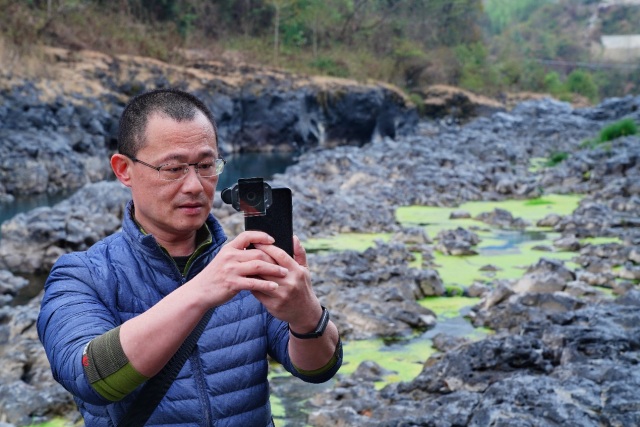 ▲宝国老师在保山黑鱼洞,体验NiSi耐司最新推出的P1手机滤镜套装