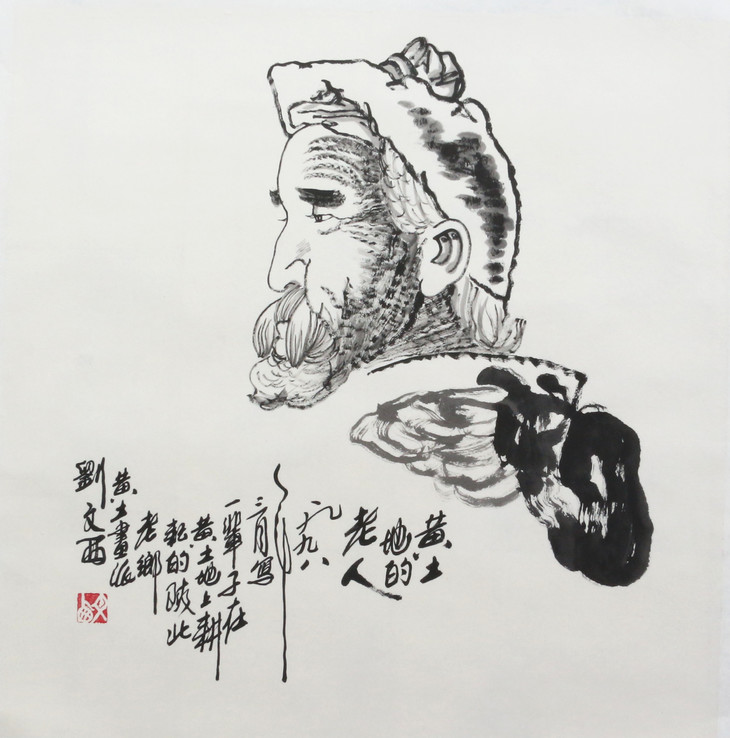 款 识:黄土地的老人一九九八年三月写一辈子在黄土地上耕耘的陕北老乡 黄土画派刘文西