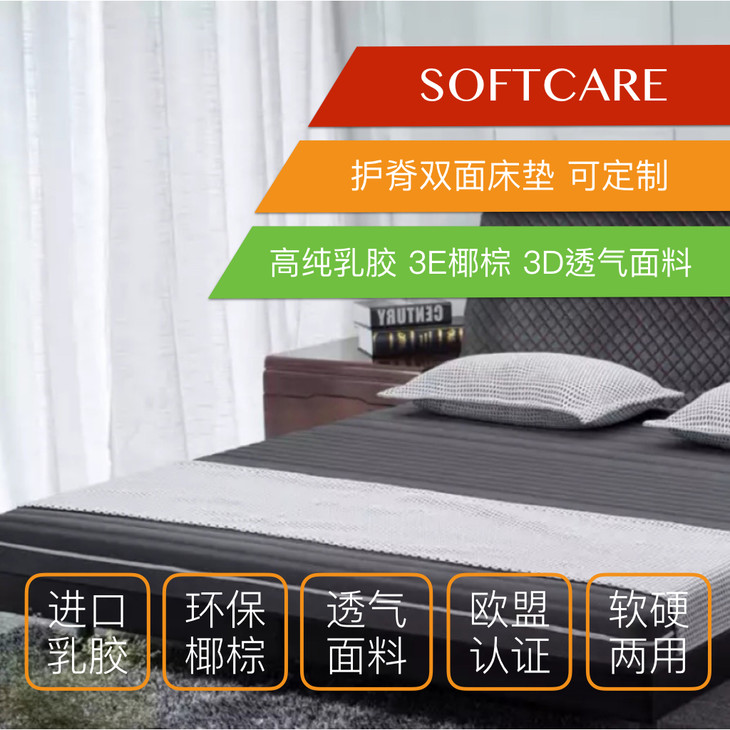 【顺丰包邮到家】可儿妈妈家和豆儿在用的床垫 儿童 老人 用它再好不过 乳胶椰棕双面床垫(欧盟认证3D透气面料)有乳胶 有3D 让床垫不会过硬 却又不会没有支撑 softcare