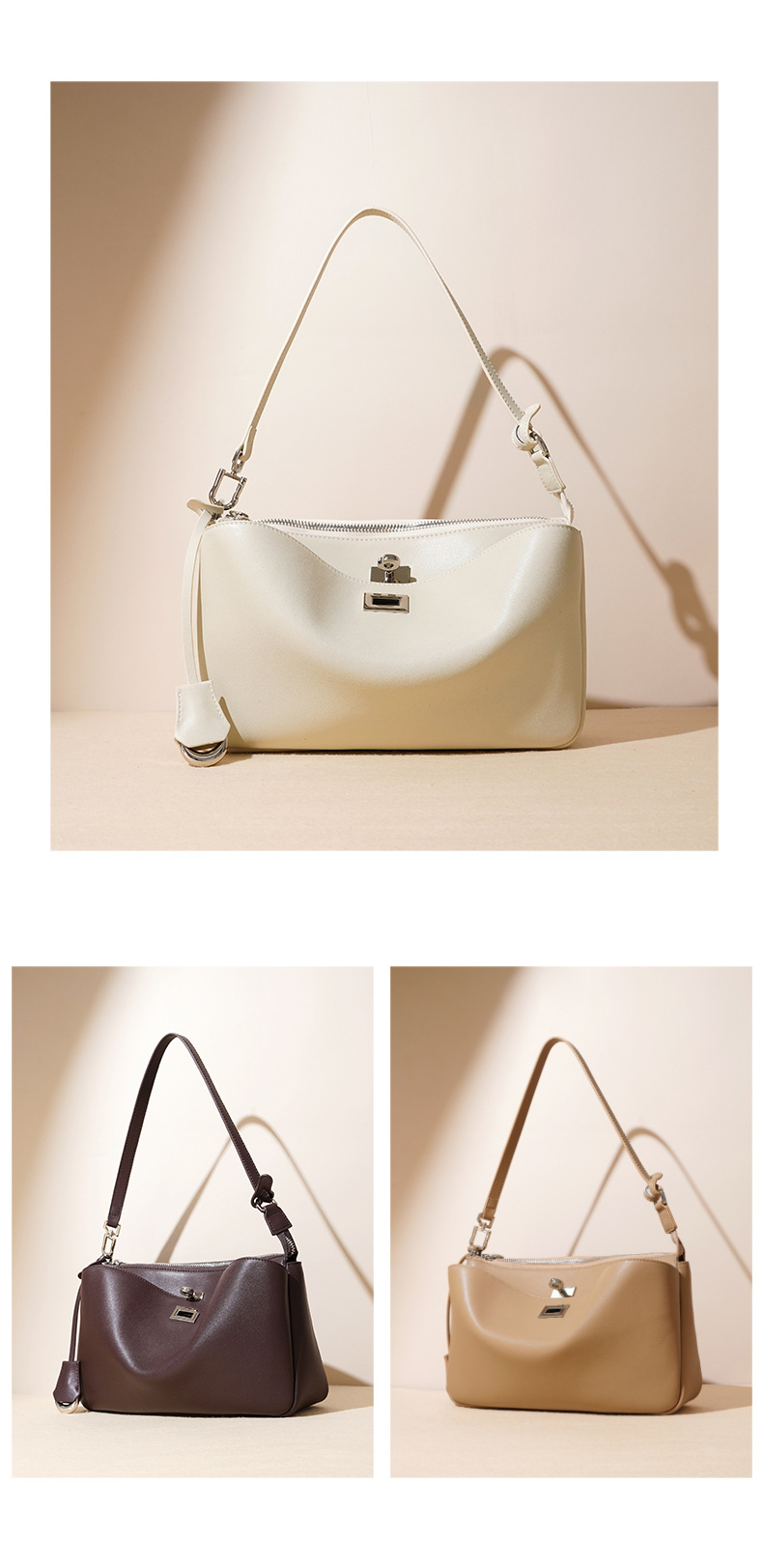 【预售3天】2025新款经典单肩包高级小众设计手提包时尚百搭锁扣女包F9947