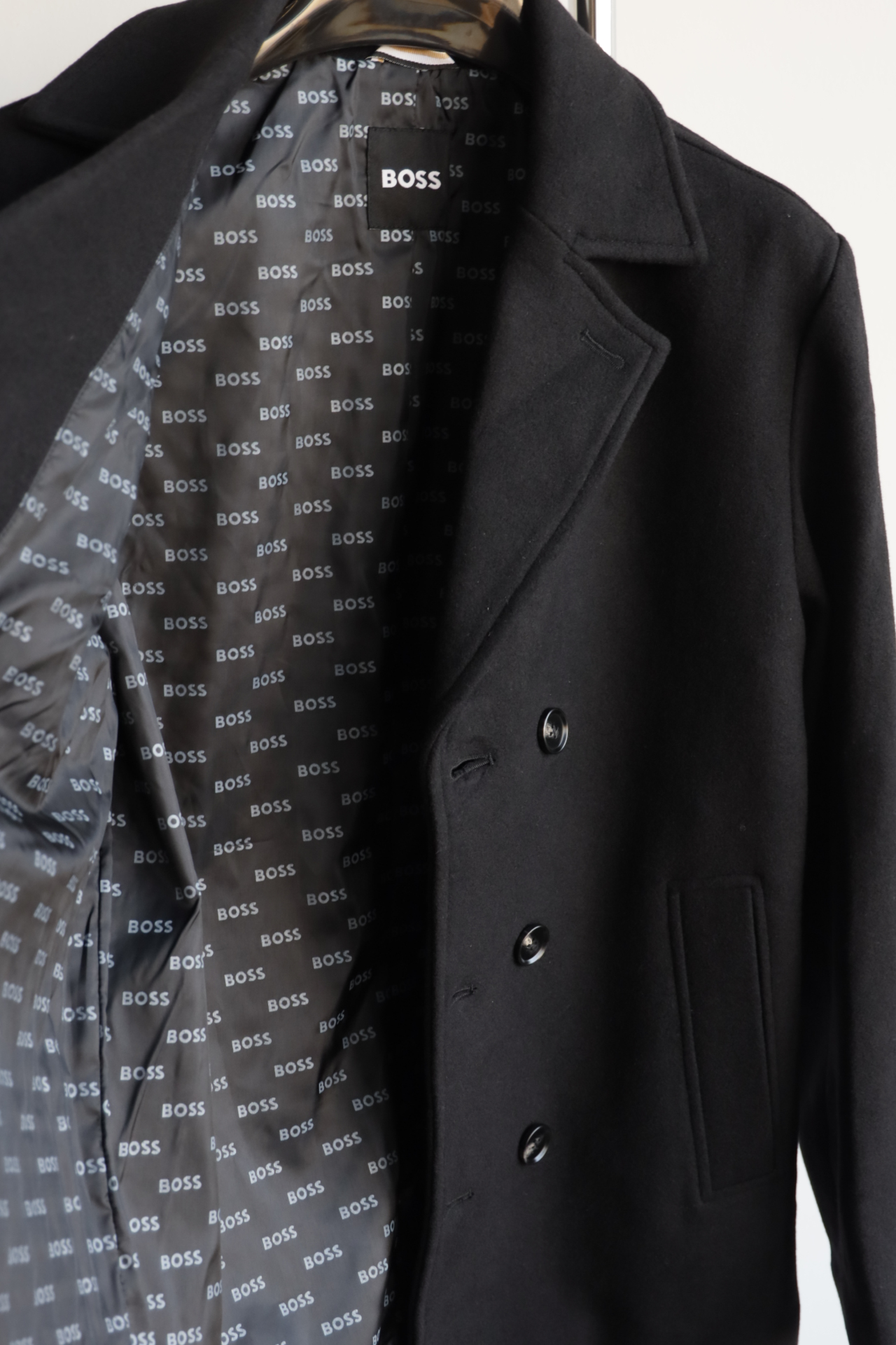 既有羊毛的保暖与细腻纹理,因为融入了聚酰胺增加了它挺阔以及耐磨,内里通体带logo成衬布,低调又奢华,双排扣中长款设计