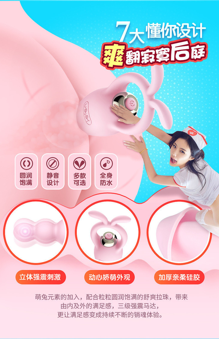【成人品】雷霆萌兔震动后庭拉珠震动棒 女用变频振动情趣拉珠成人用品 商品图0