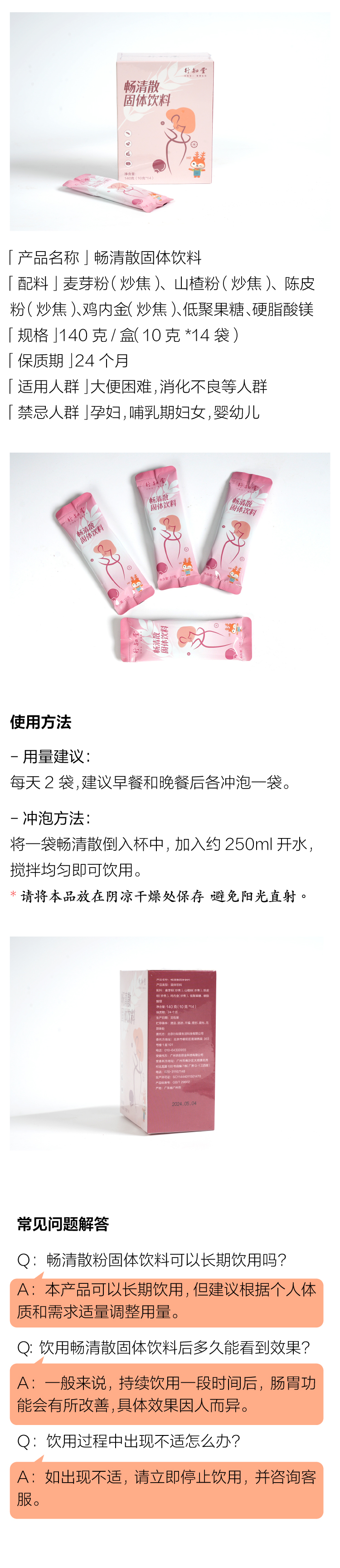 畅清散140g/盒(10克*14条)丨自营
