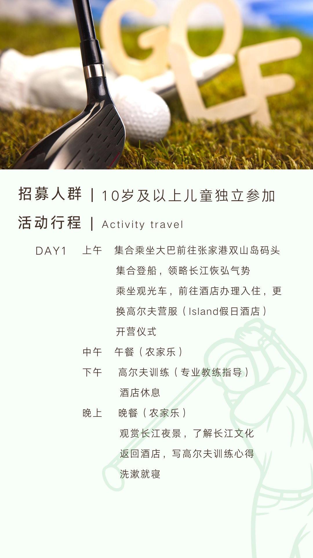 孩子志 | 张家港双山岛少年高尔夫两日一晚独立营 亲子&独立 11/04(周六)、11/12(周日) 专业训练/球技切磋,少年!挥杆吧..