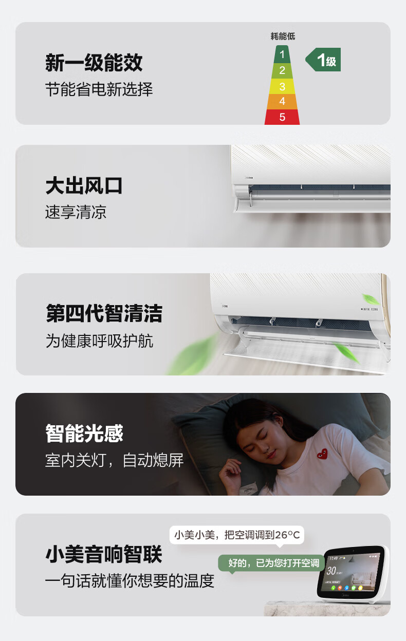 美的(Midea)空调锐行新一级能效变频空调挂机大风口自清洗KFR-35GW/BDN8Y-QT200(1)A