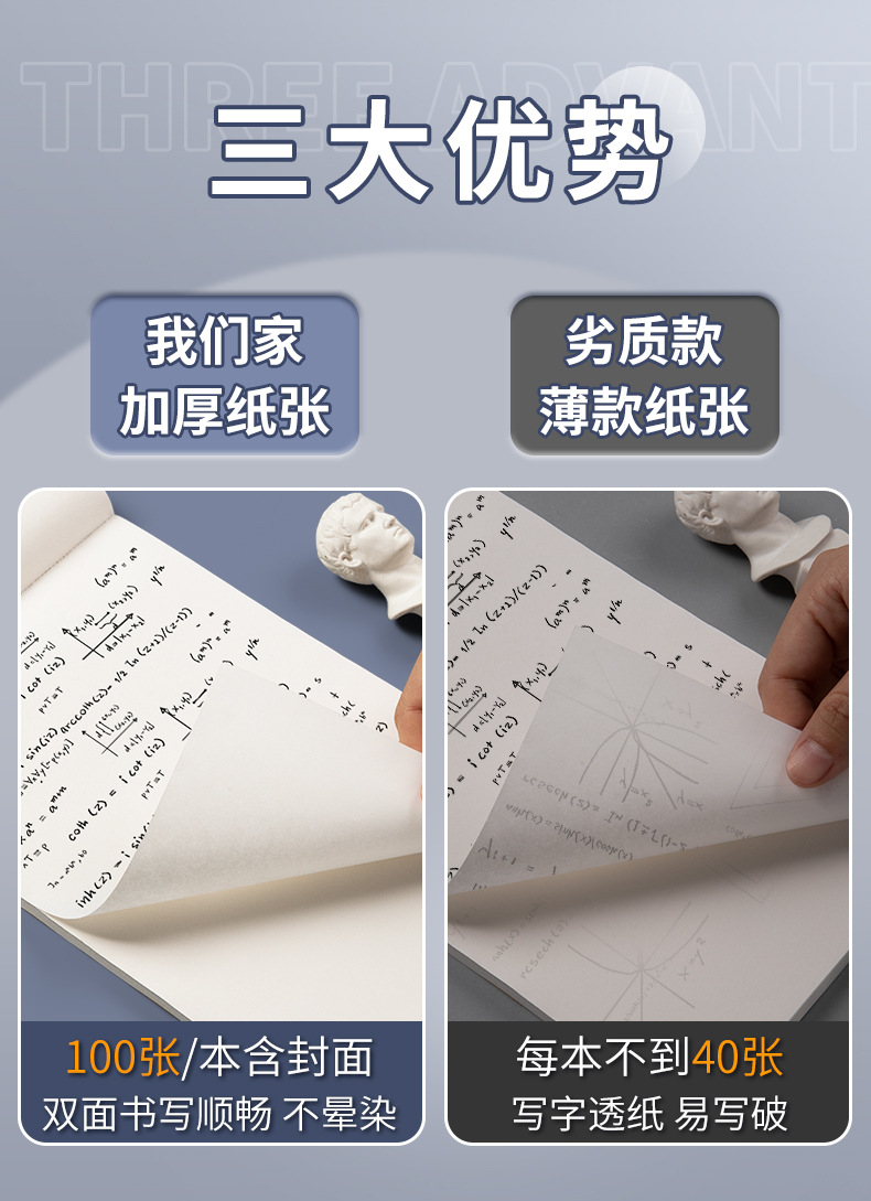草稿纸考研专用学生用大学生a4纸分区草稿本b5高中生演算纸加厚数