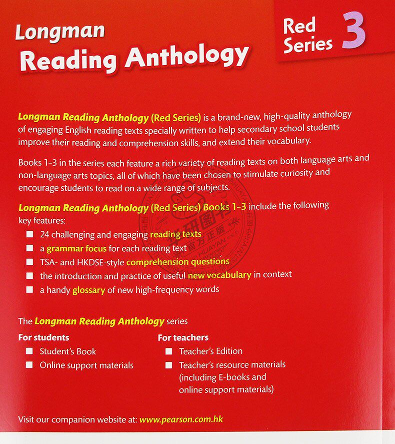 Longman Reading Anthology (Red Series) is a high�6�2quality anthology of engaging English reading texts specially written to help secondary school students improve their reading and comprehension skills, and extend their vocabulary.