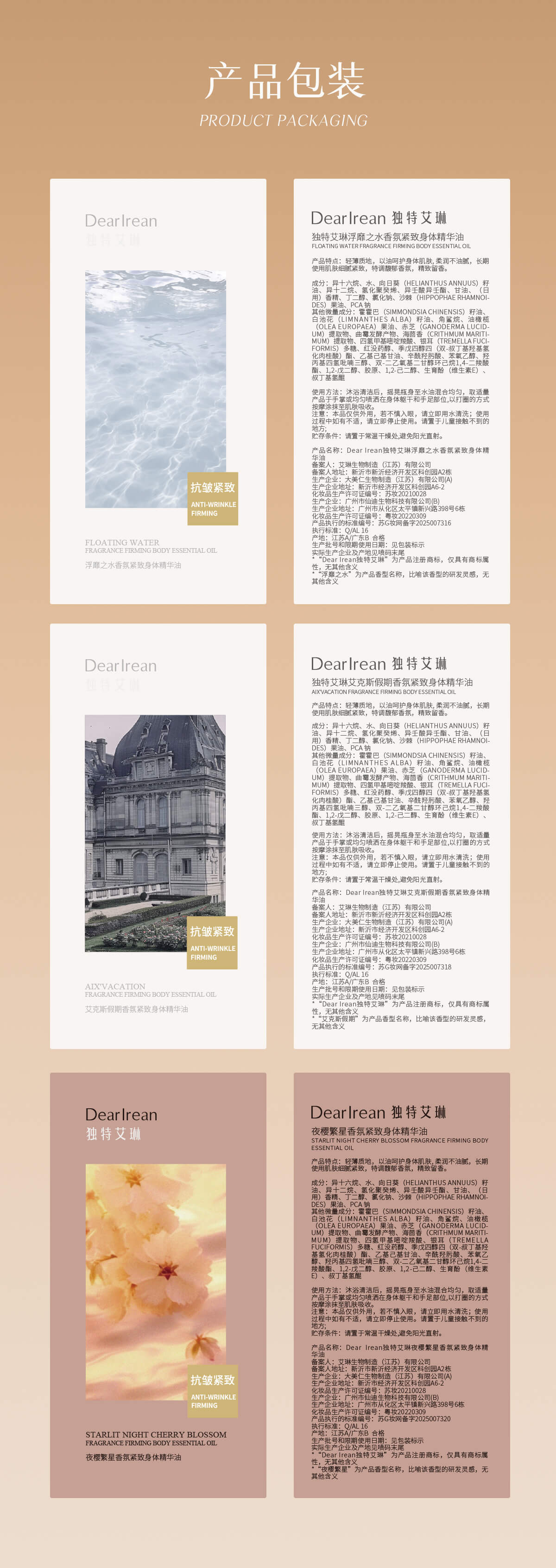 【i陪娃】独特艾琳 身体精华油&身体冷霜 护肤油保湿滋润补水香体润肤 150ml